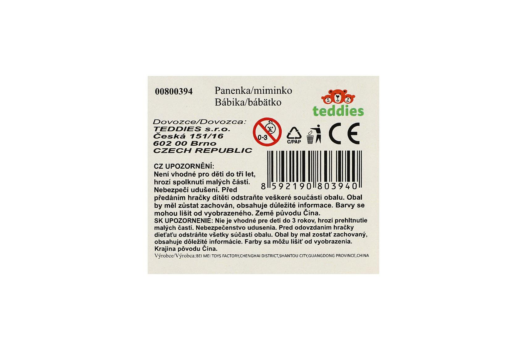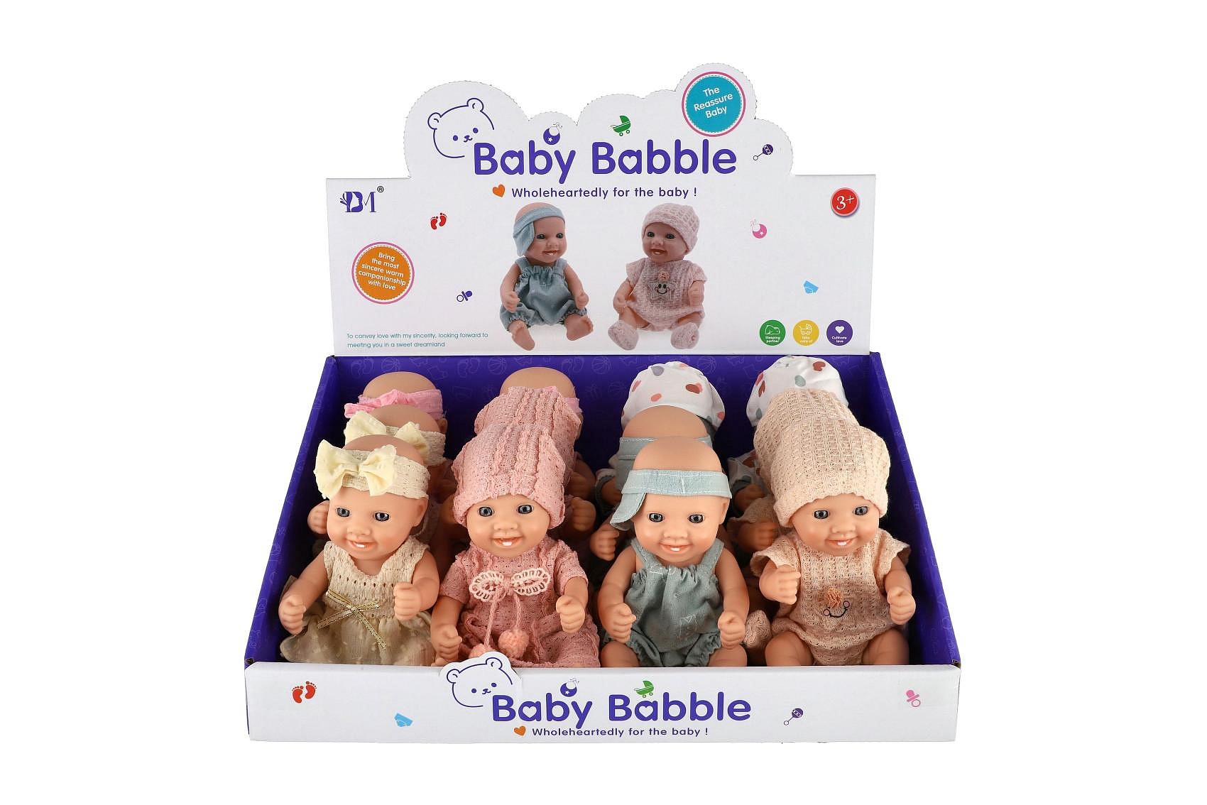 Panenka/miminko měkké tělo plast 20cm mix druhů 12ks v boxu