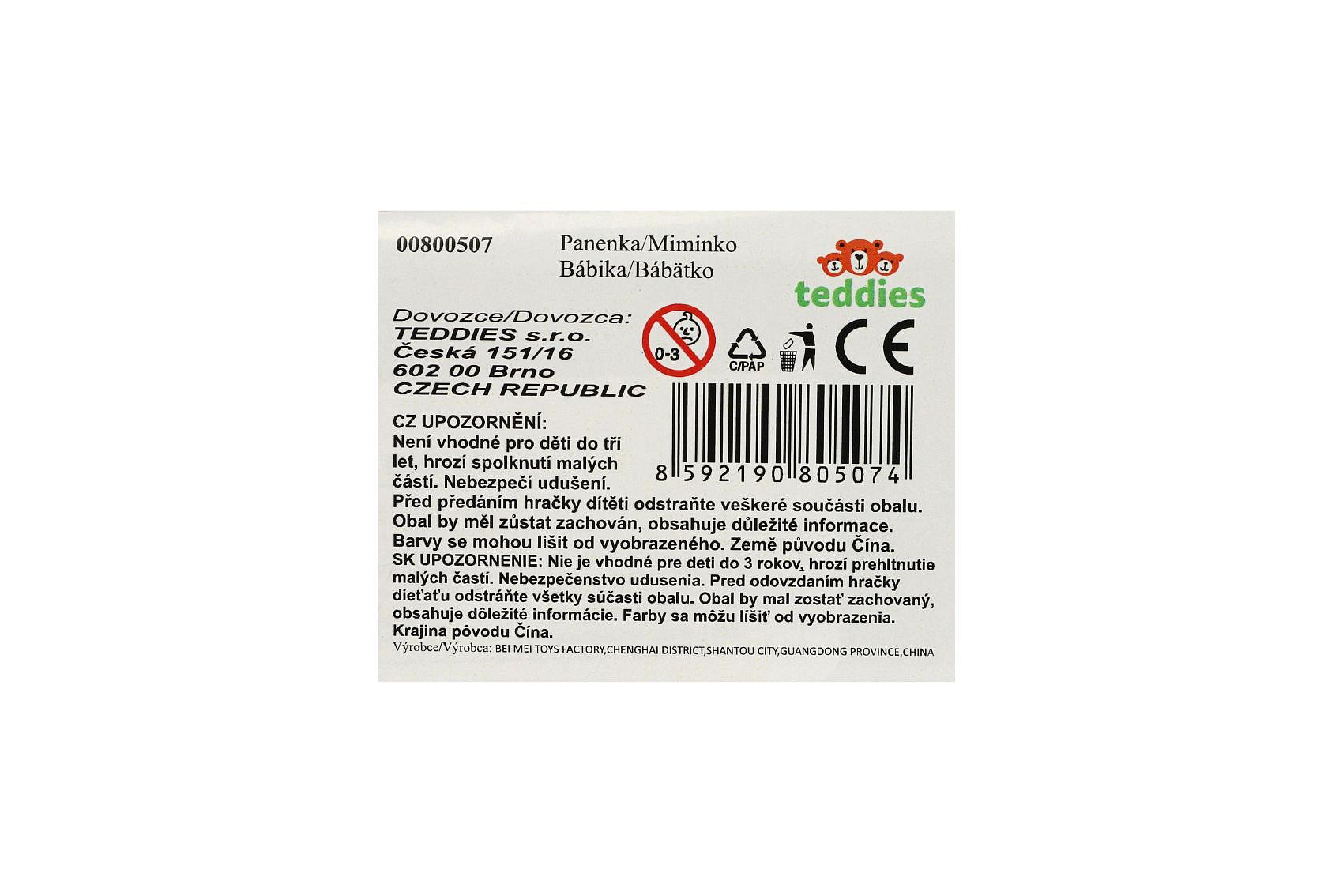 Roztomilé miminko s pohyblivýma mrkacíma očima a pevným plastovým tělíčkem je skvělou hračkou pro každou malou maminku. Panenka zavírá oči, když ji položíte, a působí velmi realisticky. Výška panenky: 30 cm Vhodné pro děti od 3 let
