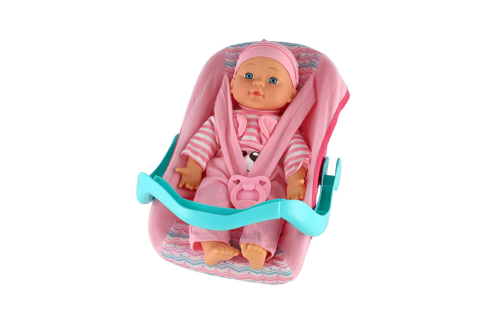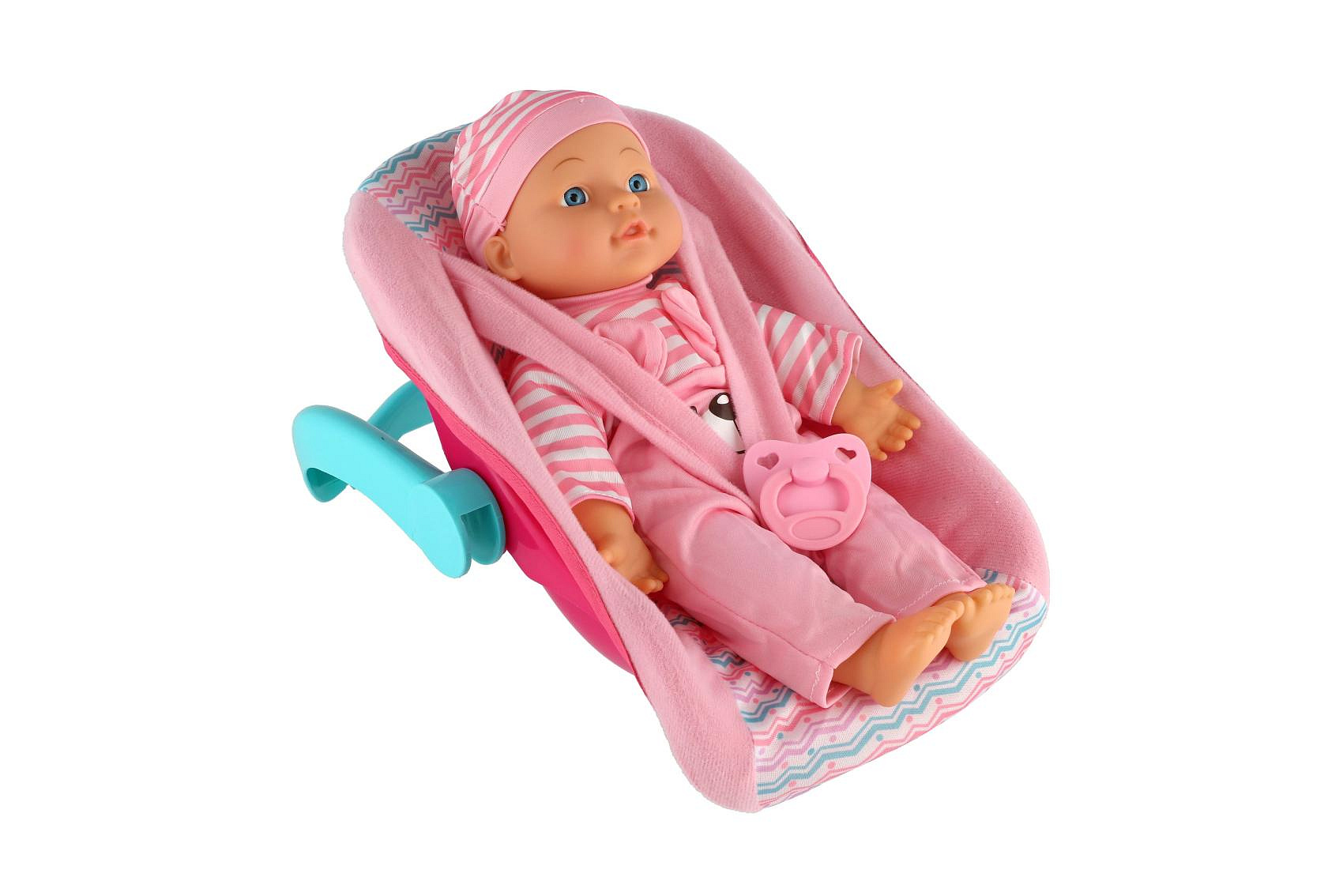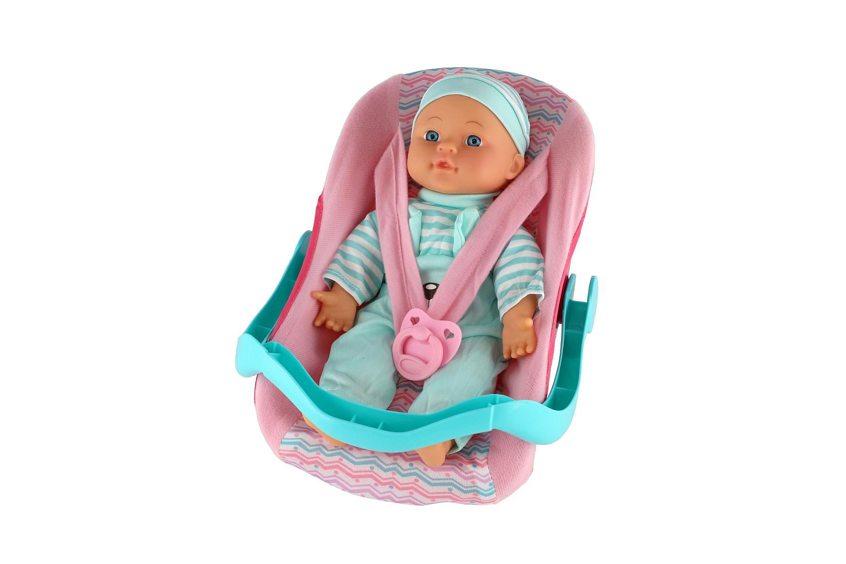 Panenka miminko plast/látka 30cm měkké tělo v nosítku/autosedačce s dudlíkem 2 barvy v blistru