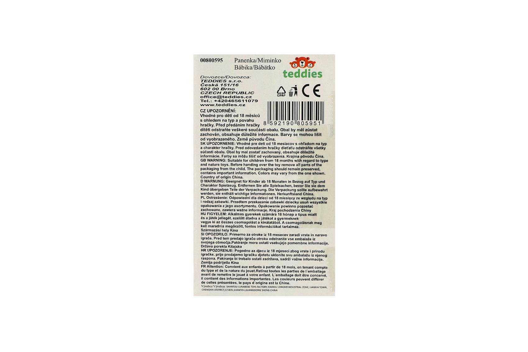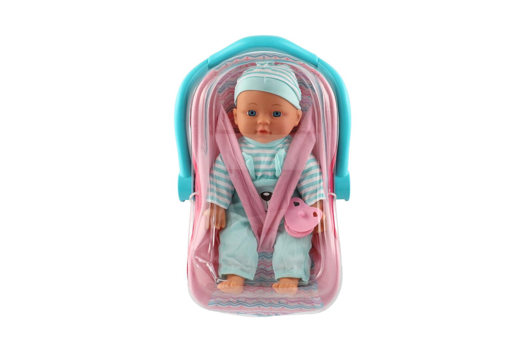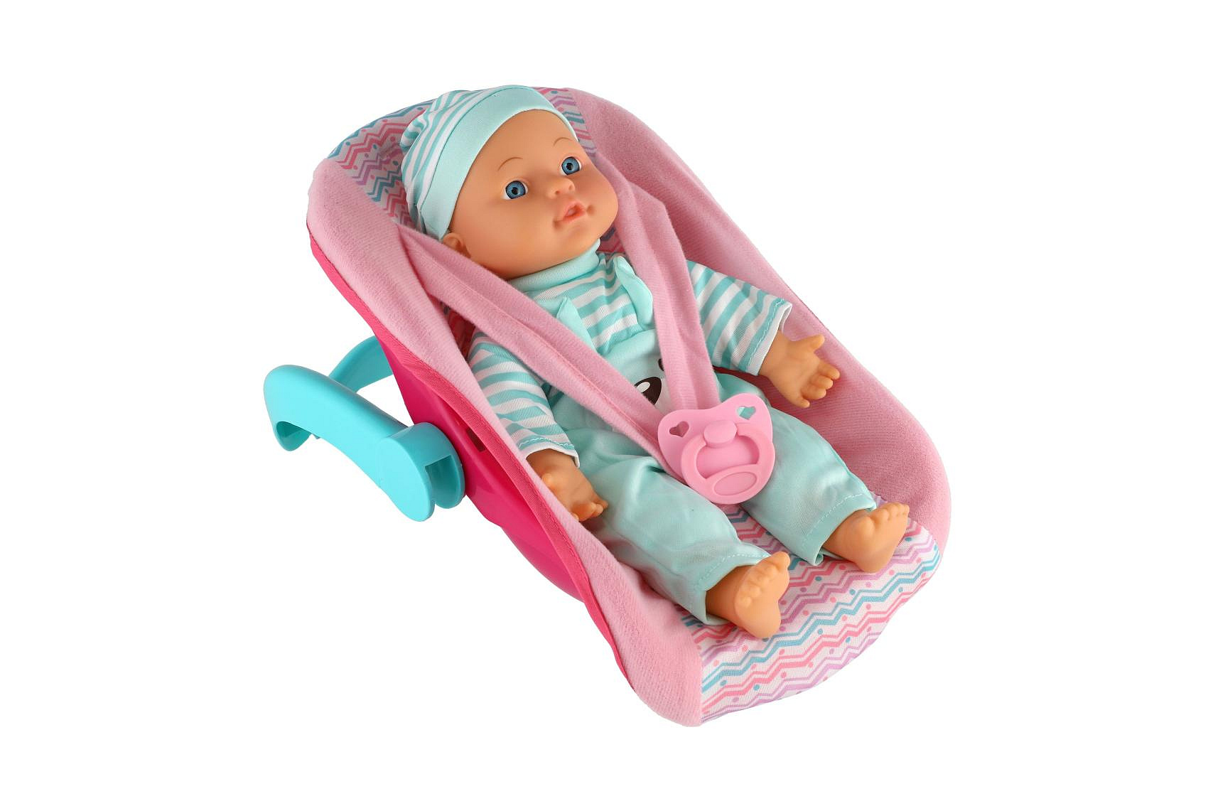 Panenka miminko plast/látka 30cm měkké tělo v nosítku/autosedačce s dudlíkem 2 barvy v blistru
