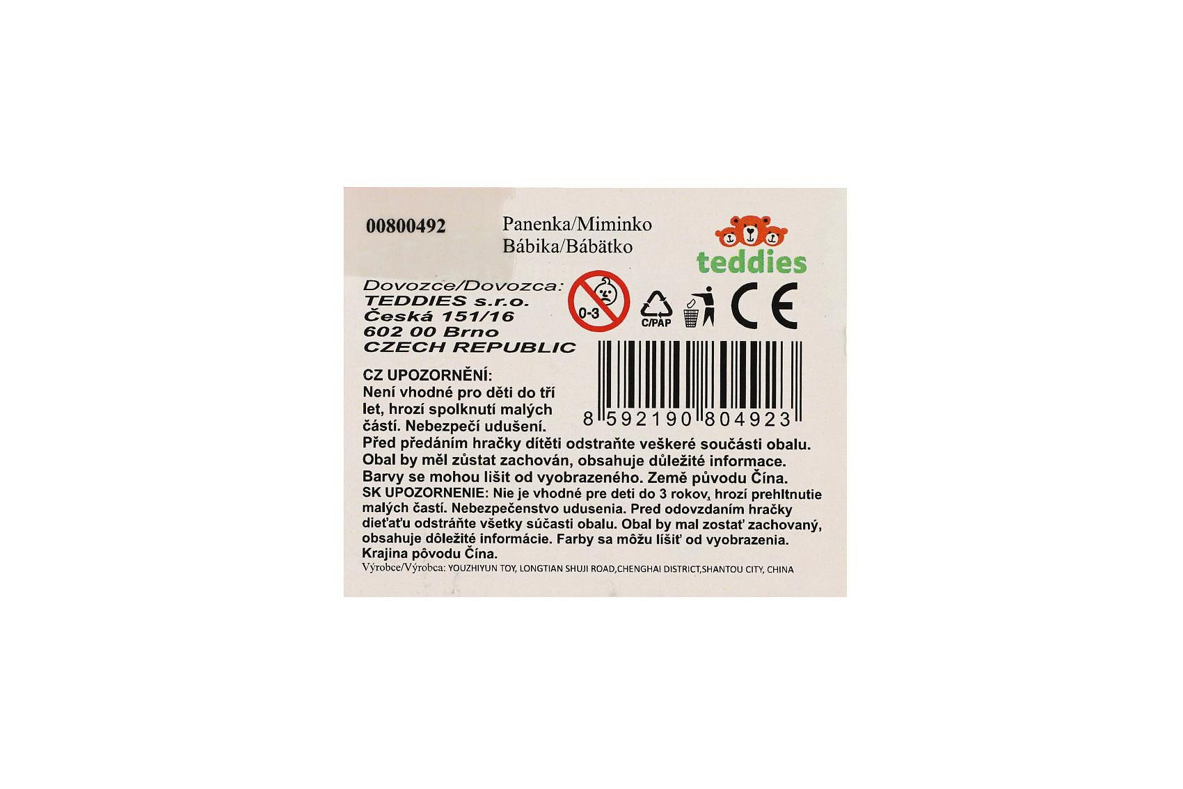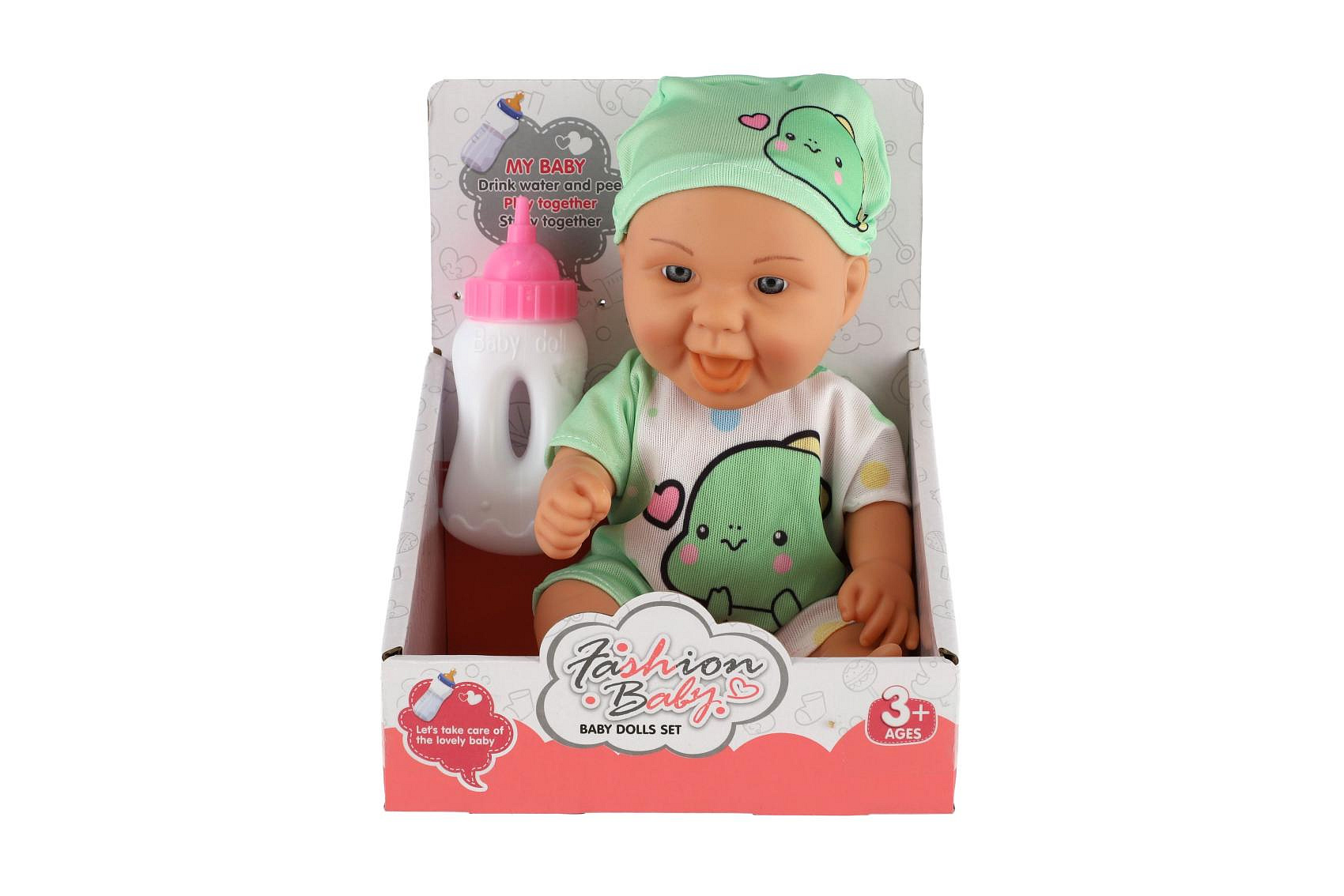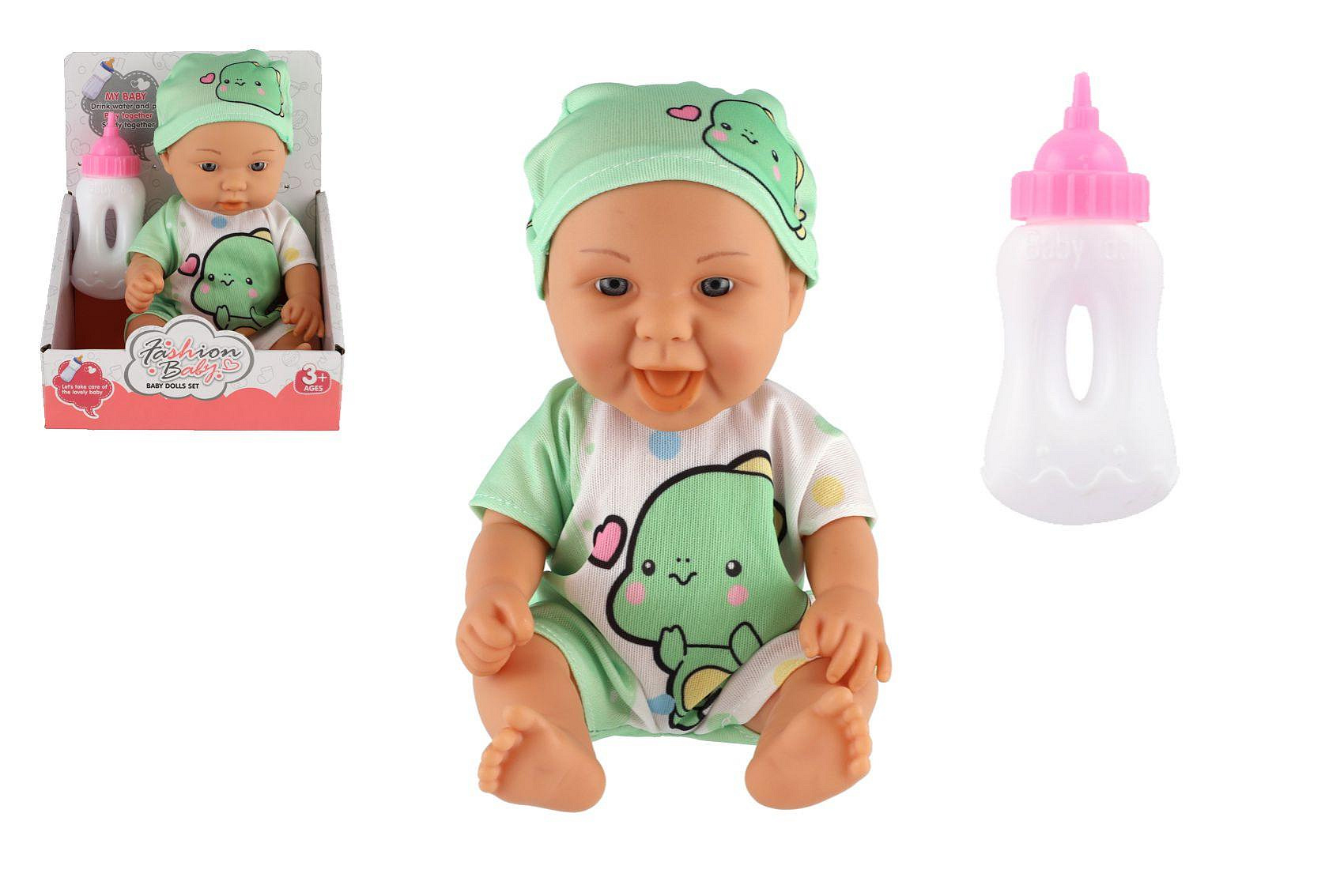 Panenka/Miminko s lahvičkou plast 26cm pevné tělo 2 druhy v krabičce 15x13x18cm
