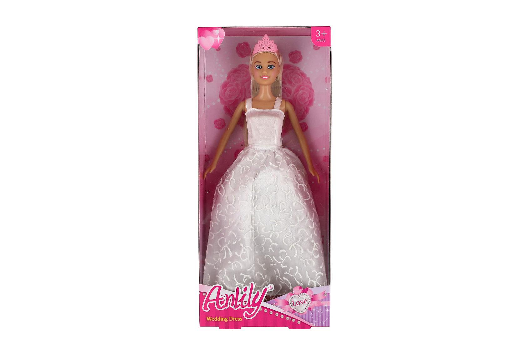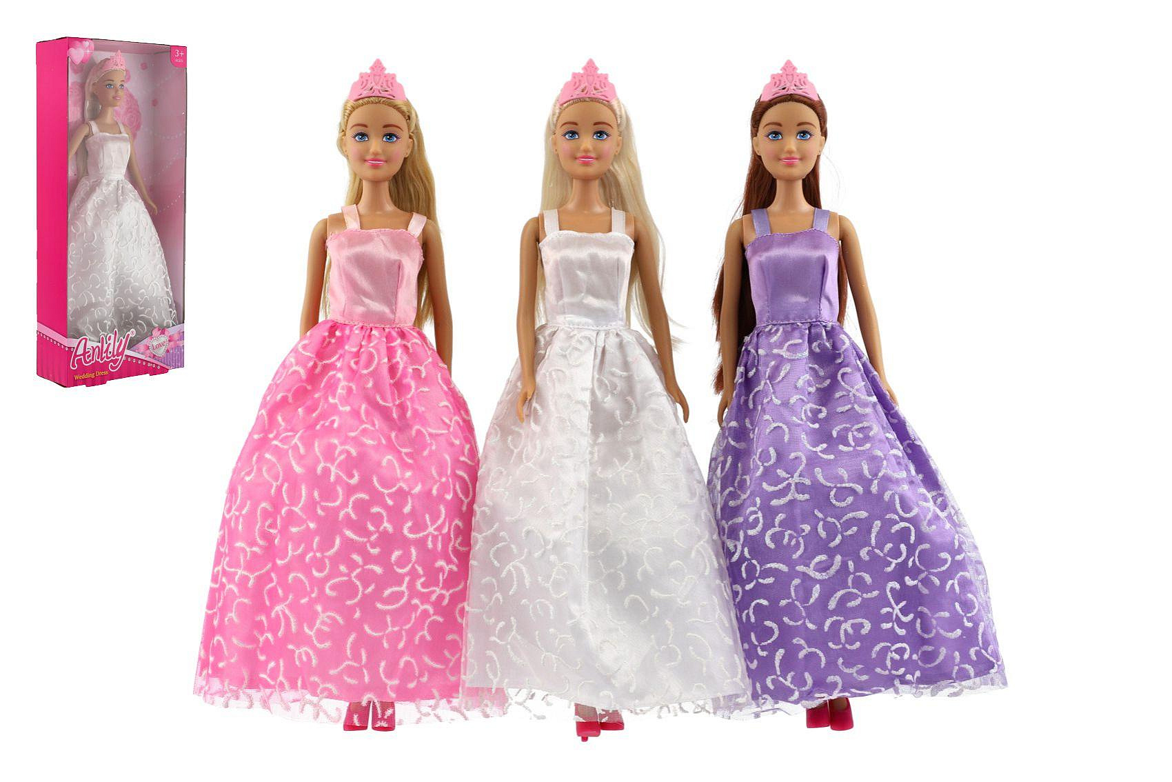 Panenka nevěsta Anlily v šatech plast 28cm 3 barvy v krabici 14x32x5cm