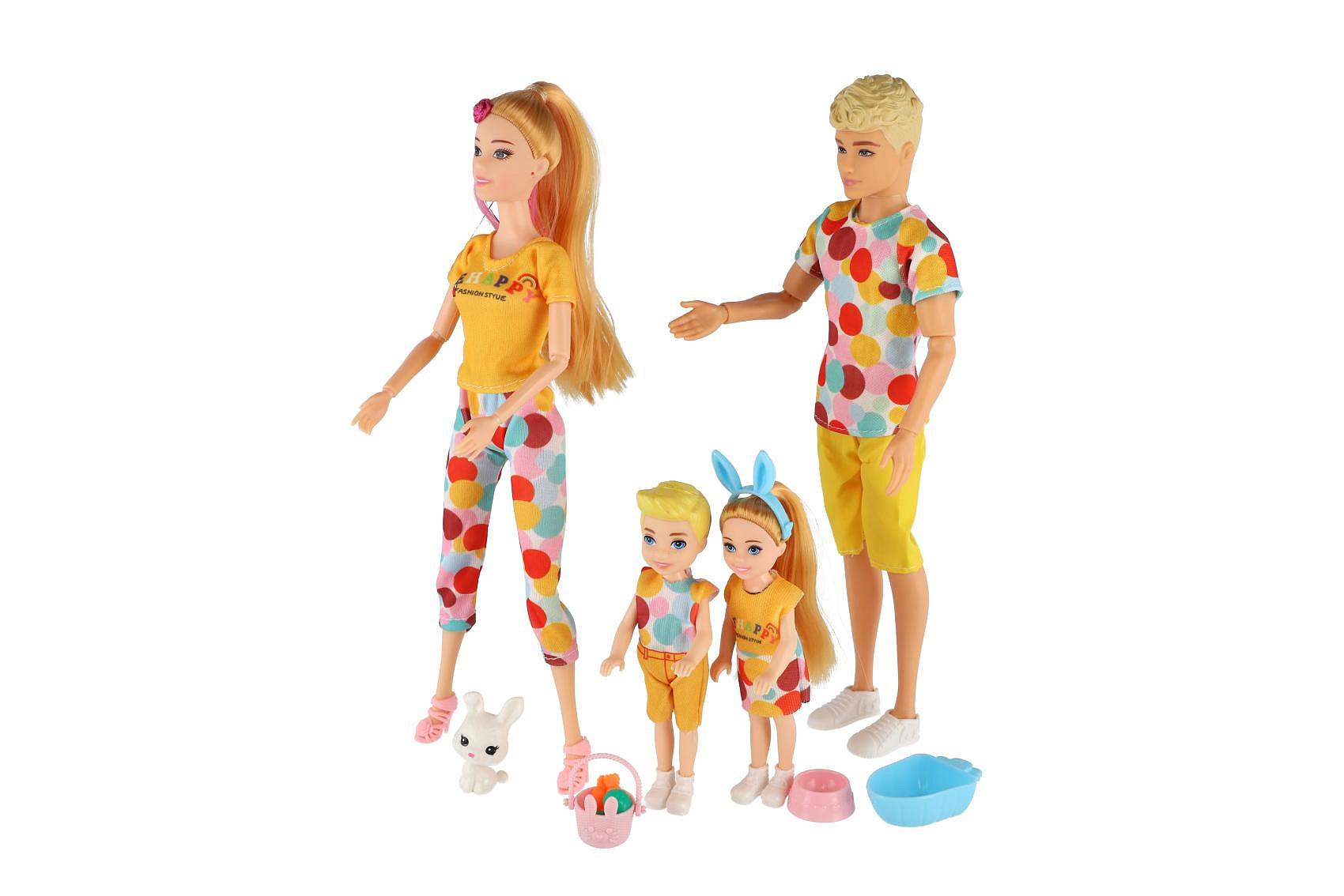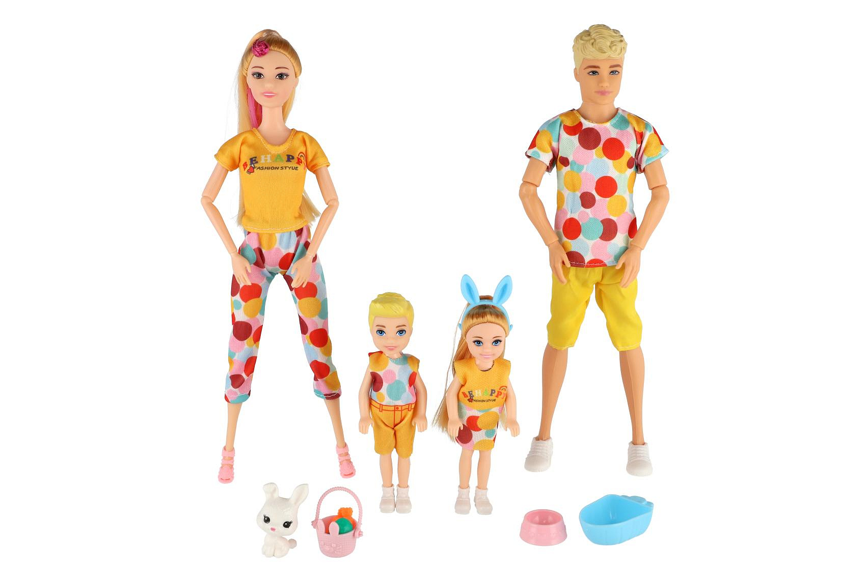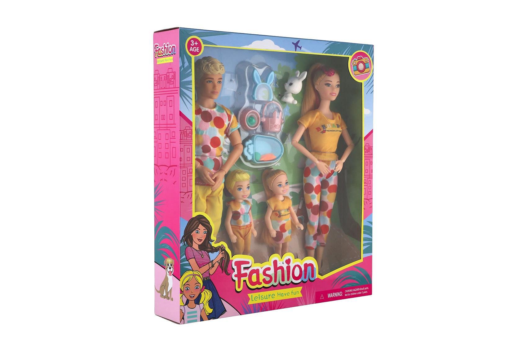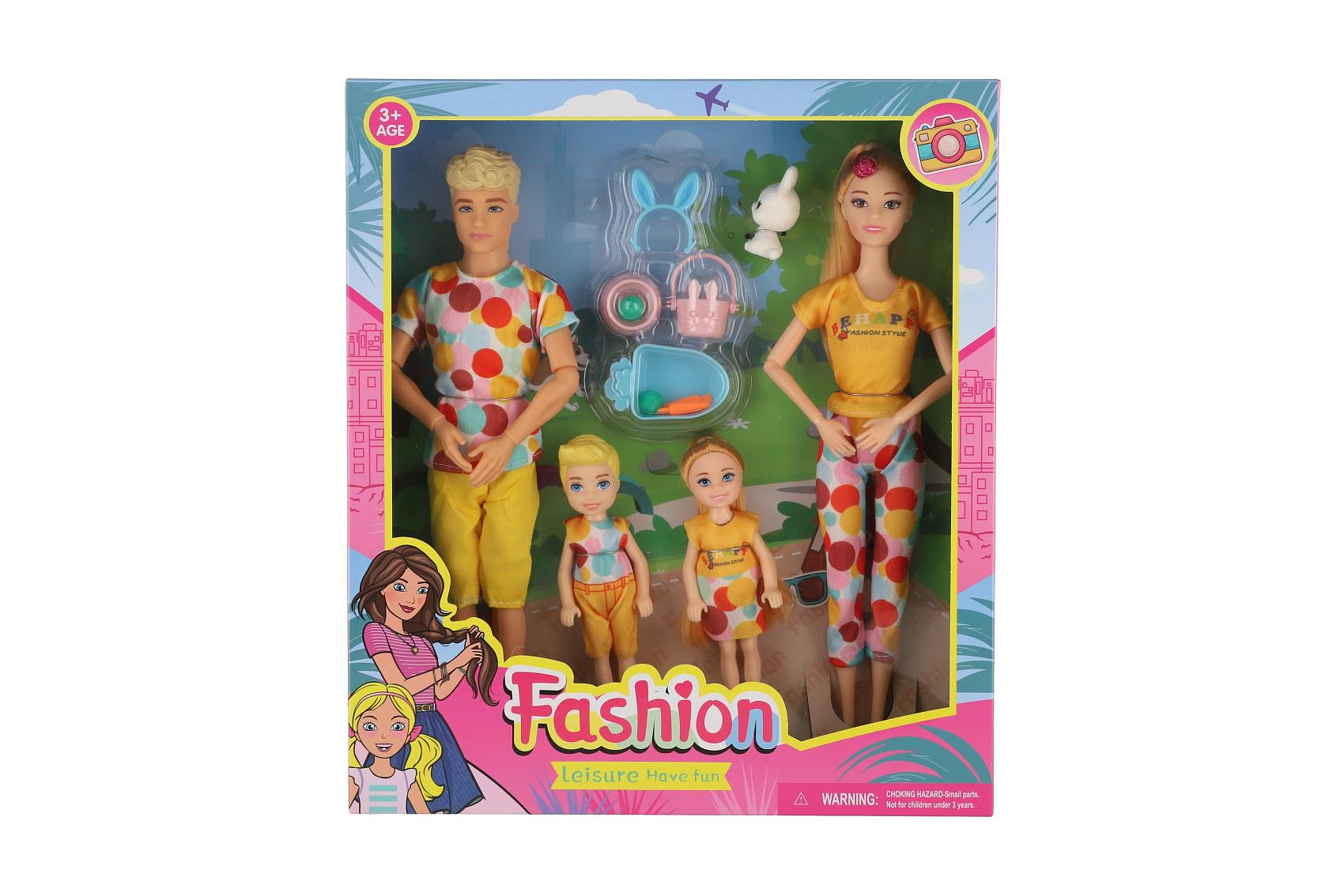 Panenka s panáčkem 30cm s dětmi 2ks - rodina plast s doplňky v krabici 29x30x6cm