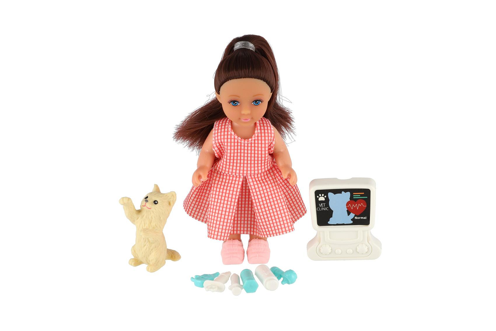 Panenka veterinářka plast 11cm pevné tělo s doplňky 2 druhy v krabičce 15x16x4,5cm