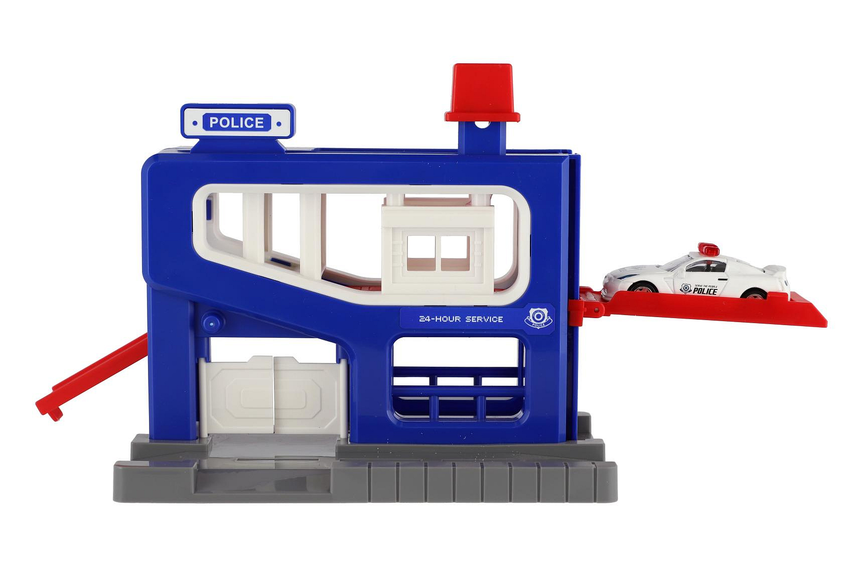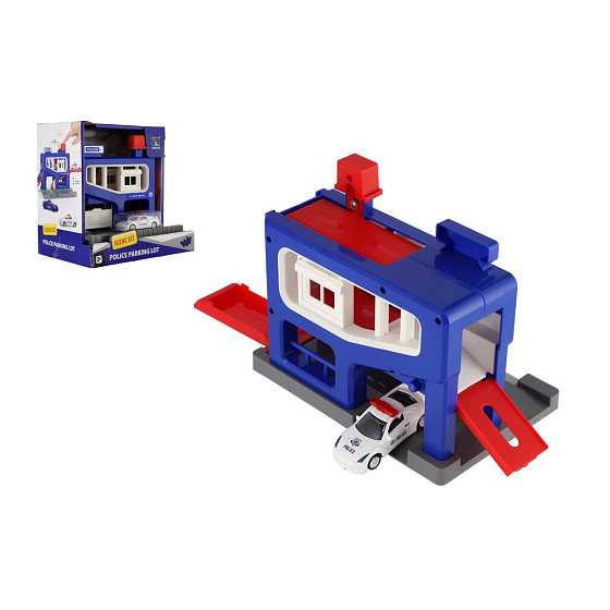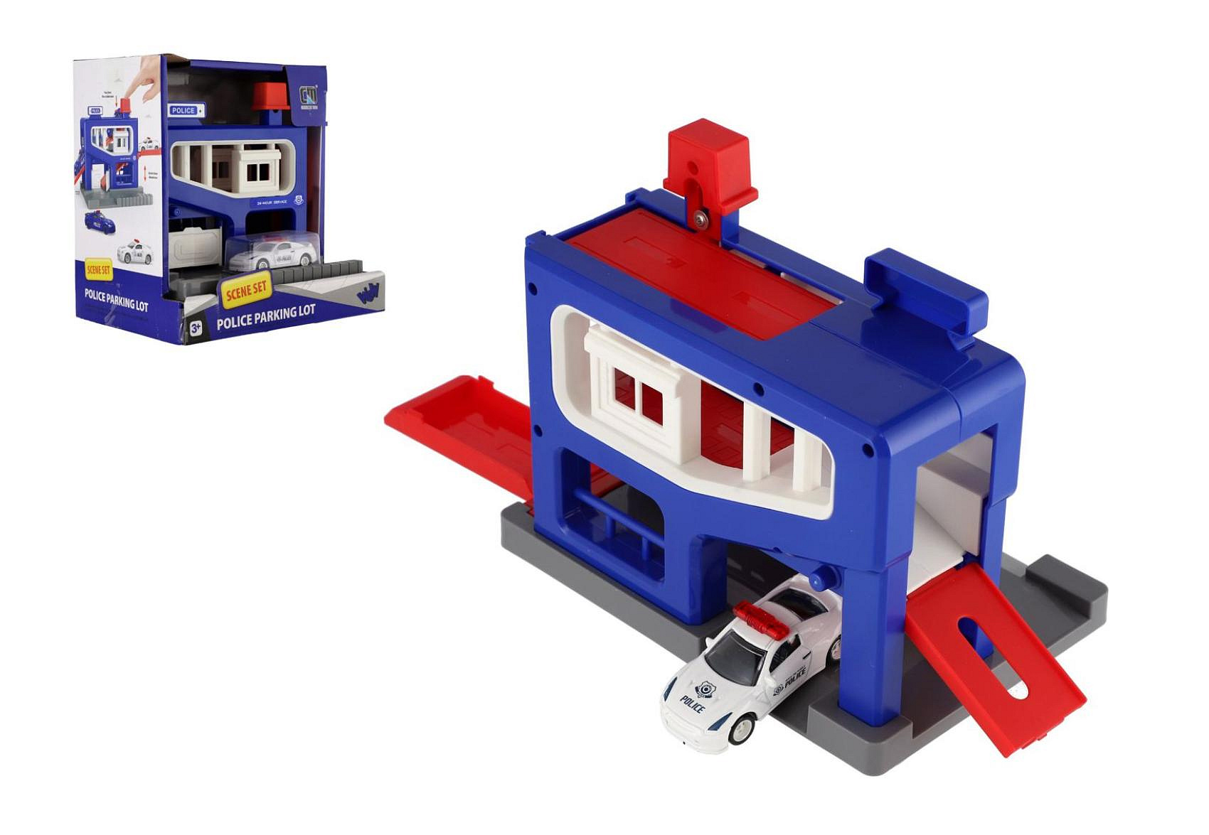 Popis Parkovací garáž + auto policie plast v krabici 20x20x14cm