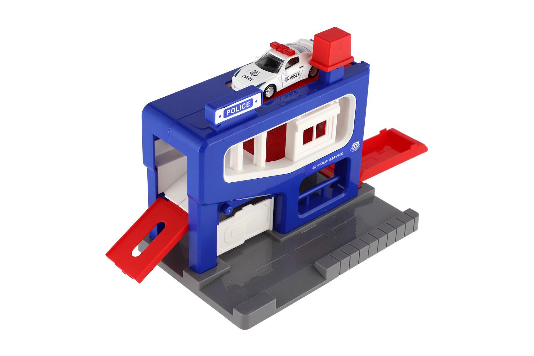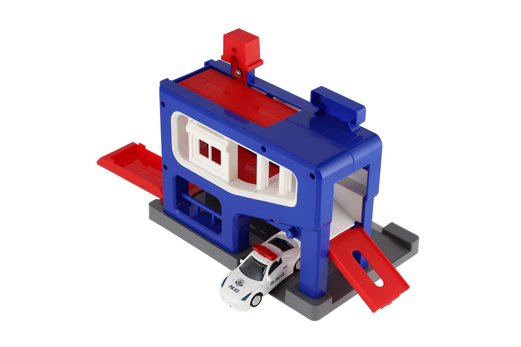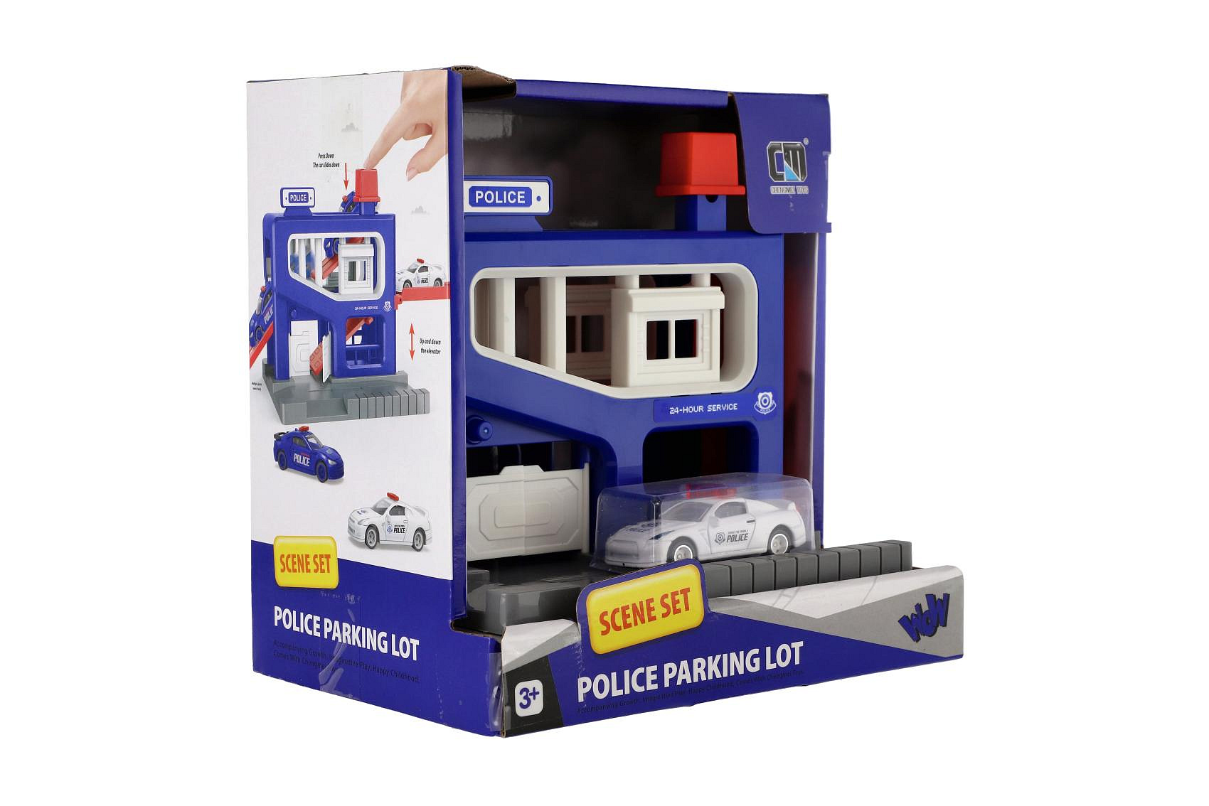 Popis Parkovací garáž + auto policie plast v krabici 20x20x14cm