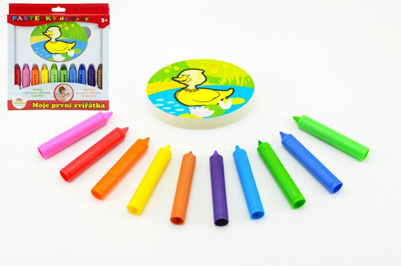 Pastelky do vany Moje první zvířátka 10 ks s houbičkou v krabičce 21x22x3cm MPZ