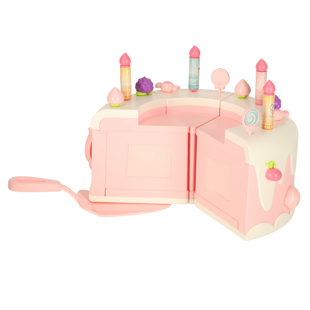 pohyblivé prvky: ano – odnímatelné kousky dortu připevněné na suchý zip, vyjímatelné sladkosti (lze tam umístit svíčky) a vyměnitelné figurky