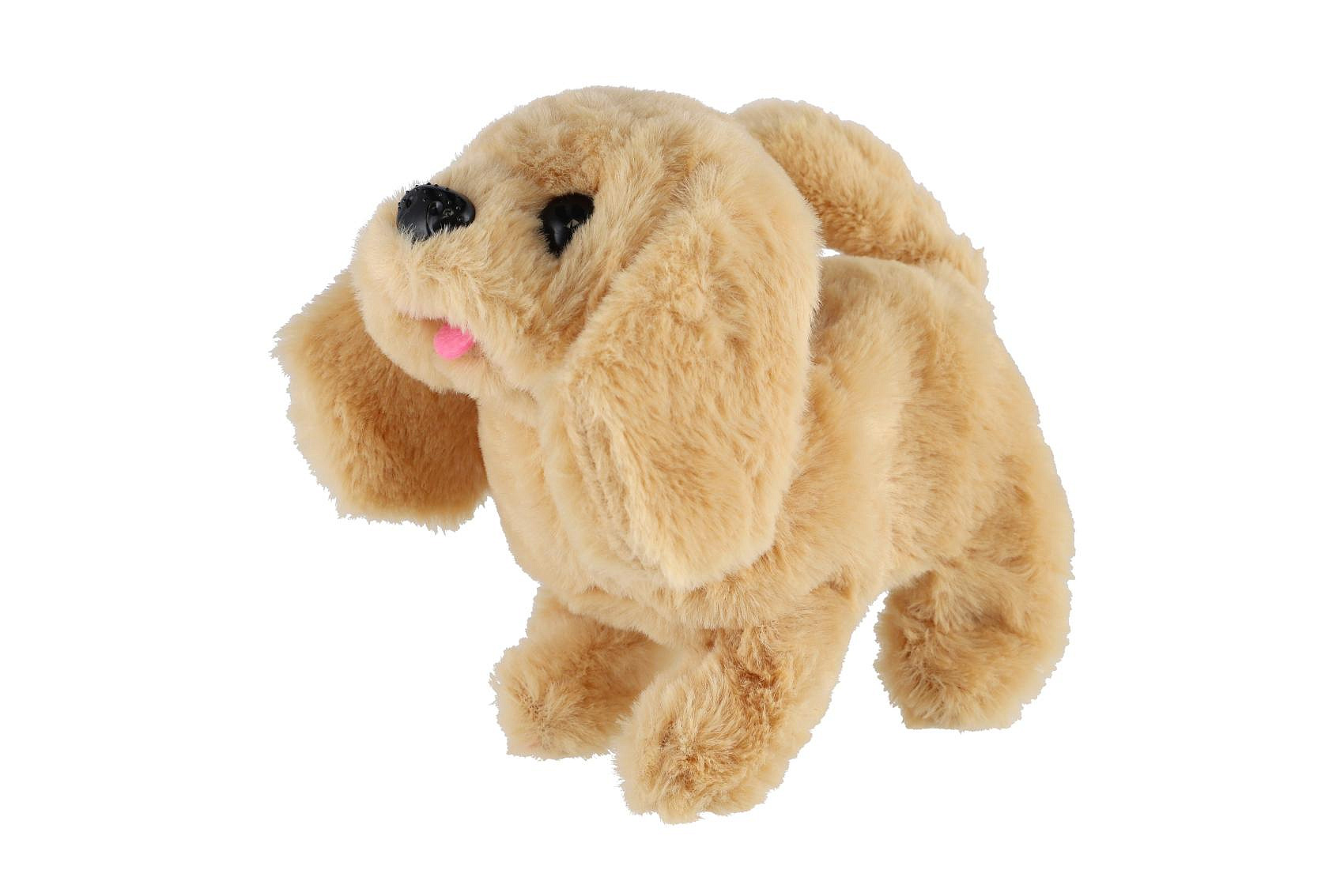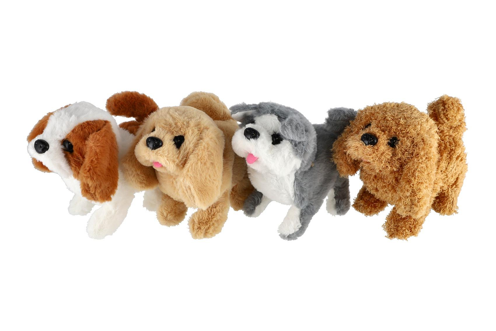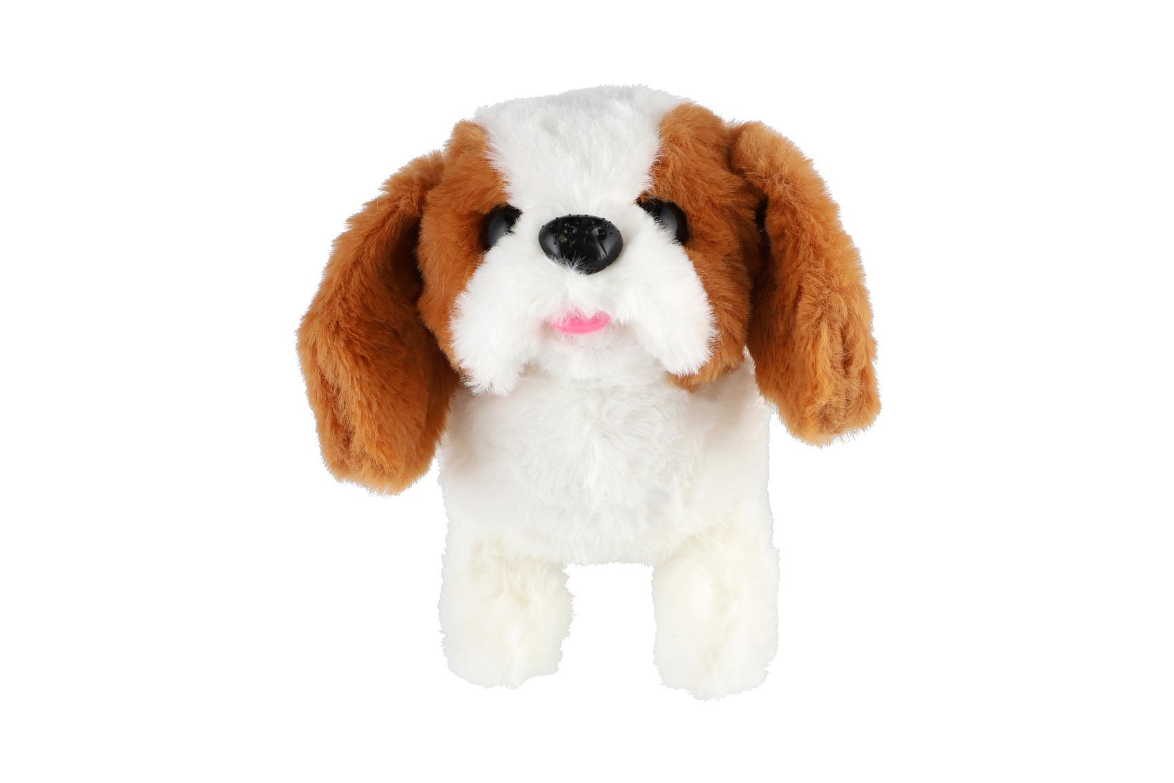 Pes chodící štěkající plyš/plast 18cm na baterie 4 druhy 8ks v boxu