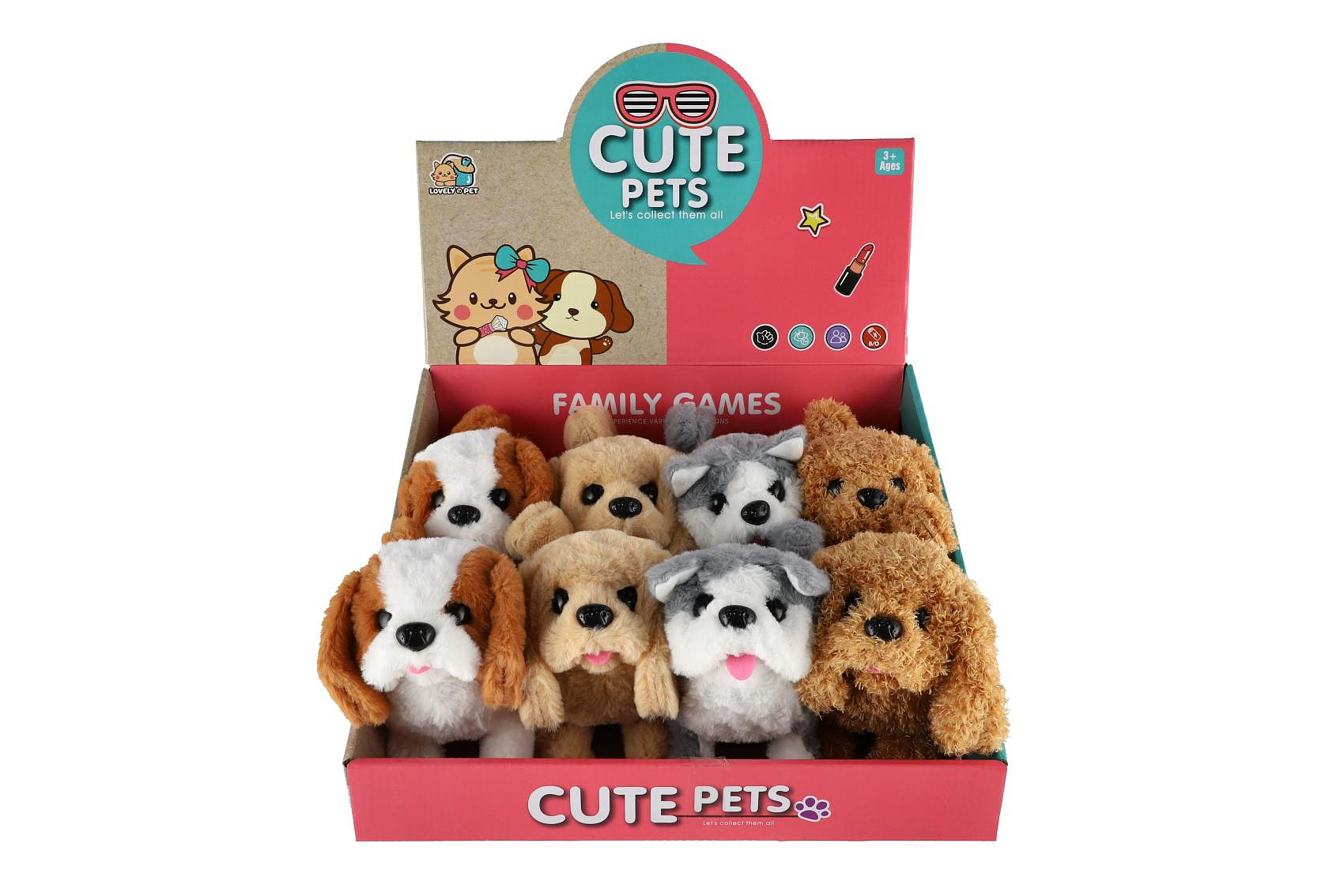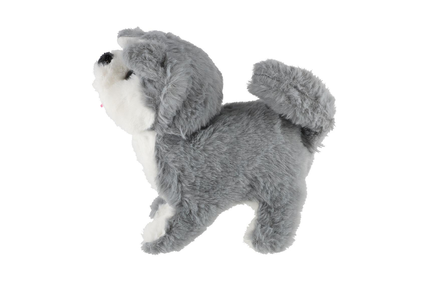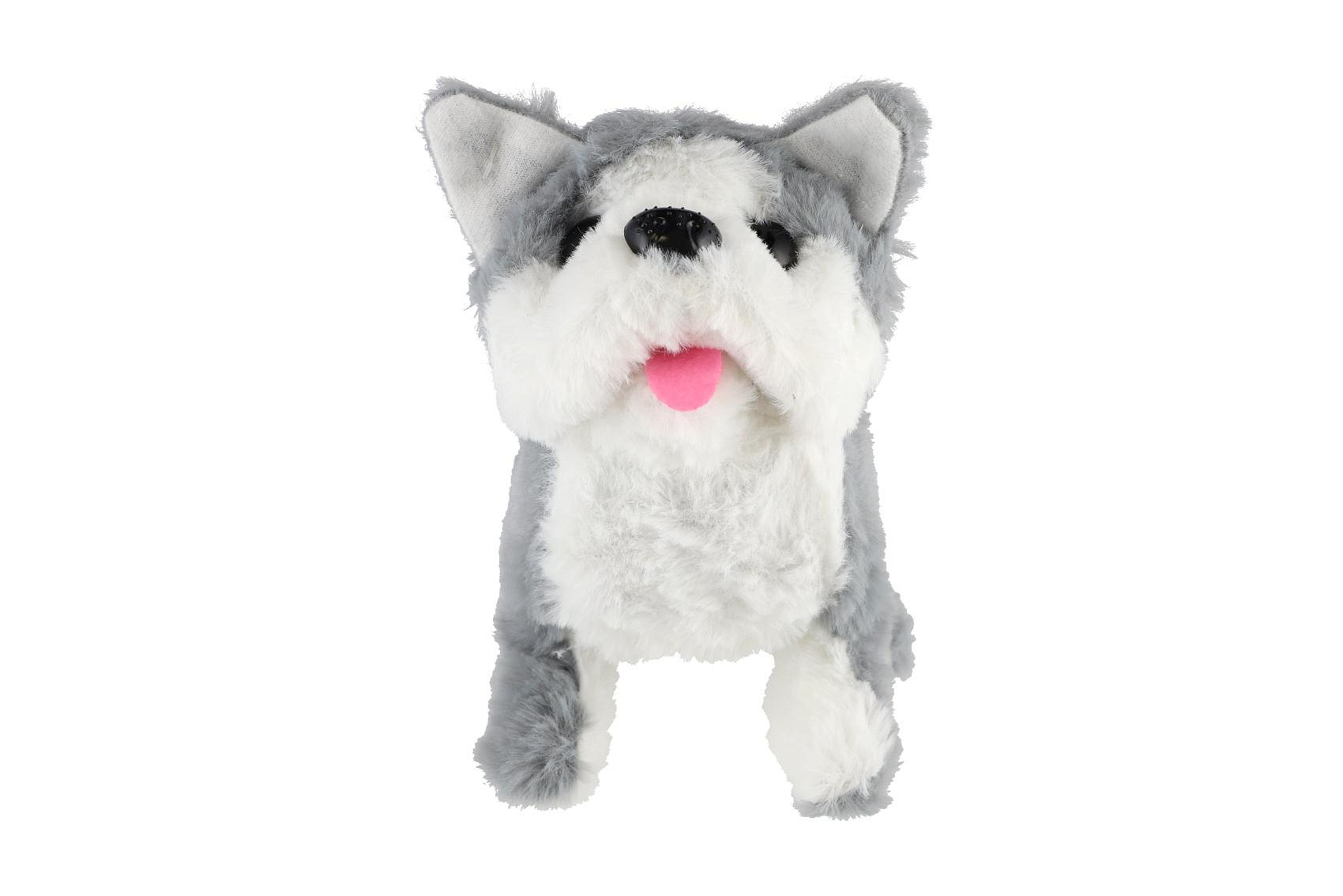 Pes chodící štěkající plyš/plast 18cm na baterie 4 druhy 8ks v boxu