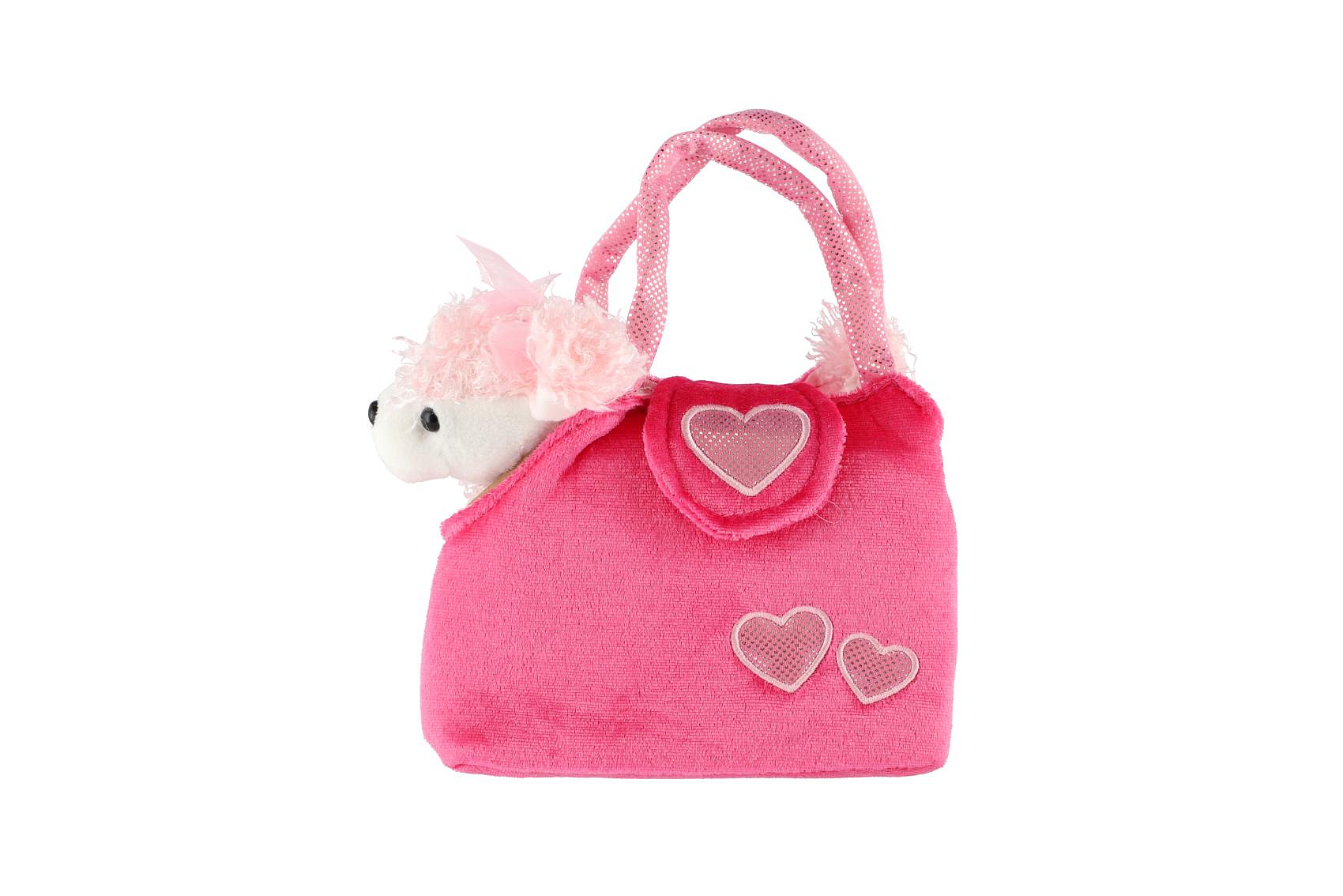 Popis Pes/Pejsek v kabelce/tašce růžové plyš 19x17cm v sáčku
