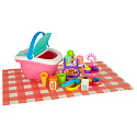 Pastelový piknikový koš není jen nádoba - je to fantastické centrum zábavy, které se po otevření stává interaktivním stanovištěm pro servírování sladkostí.
