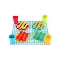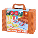 Užijte si piknik plný fantazie s touto barevnou sadou nádobí v praktickém plastovém košíku. Souprava obsahuje vše potřebné pro piknikovou hostinu pro čtyři – talířky, příbory, kelímky a dokonce i dečku. Lehké a bezpečné provedení je ideální pro dětskou hru doma, na zahradě i venku. Rozvíjí dětskou fantazii a sociální hru. Rozměry balení 24 x 18 x 8 cm Vhodné pro děti od 2 let.