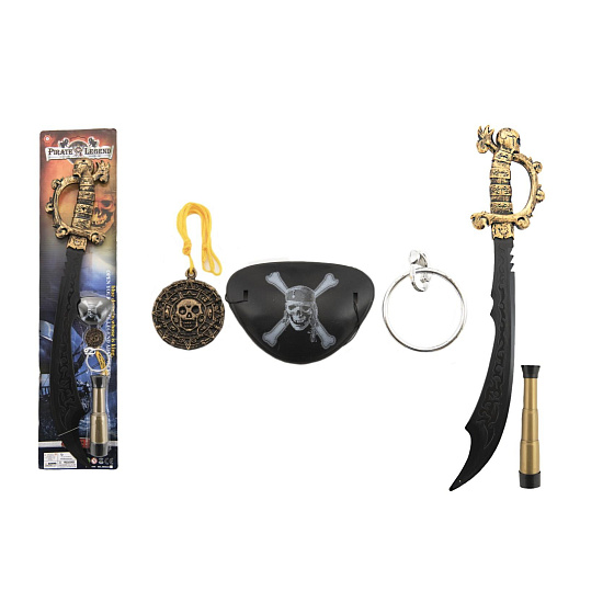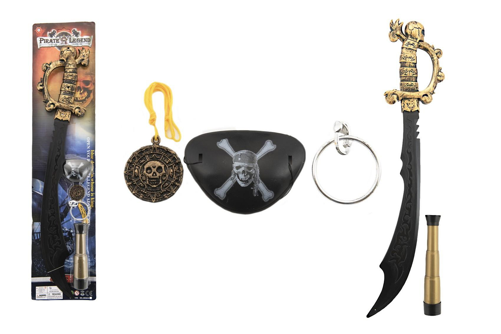 Pirátská sada meč s doplňky plast 58cm na kartě