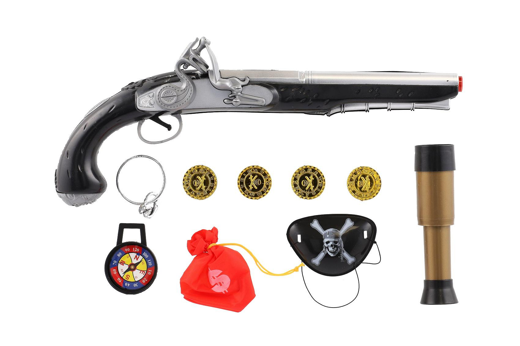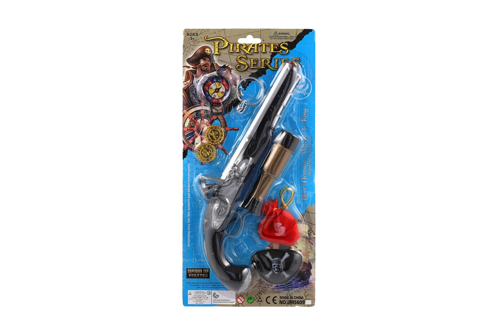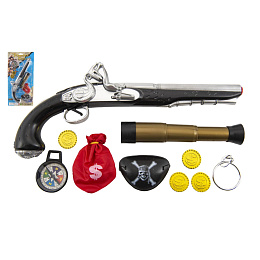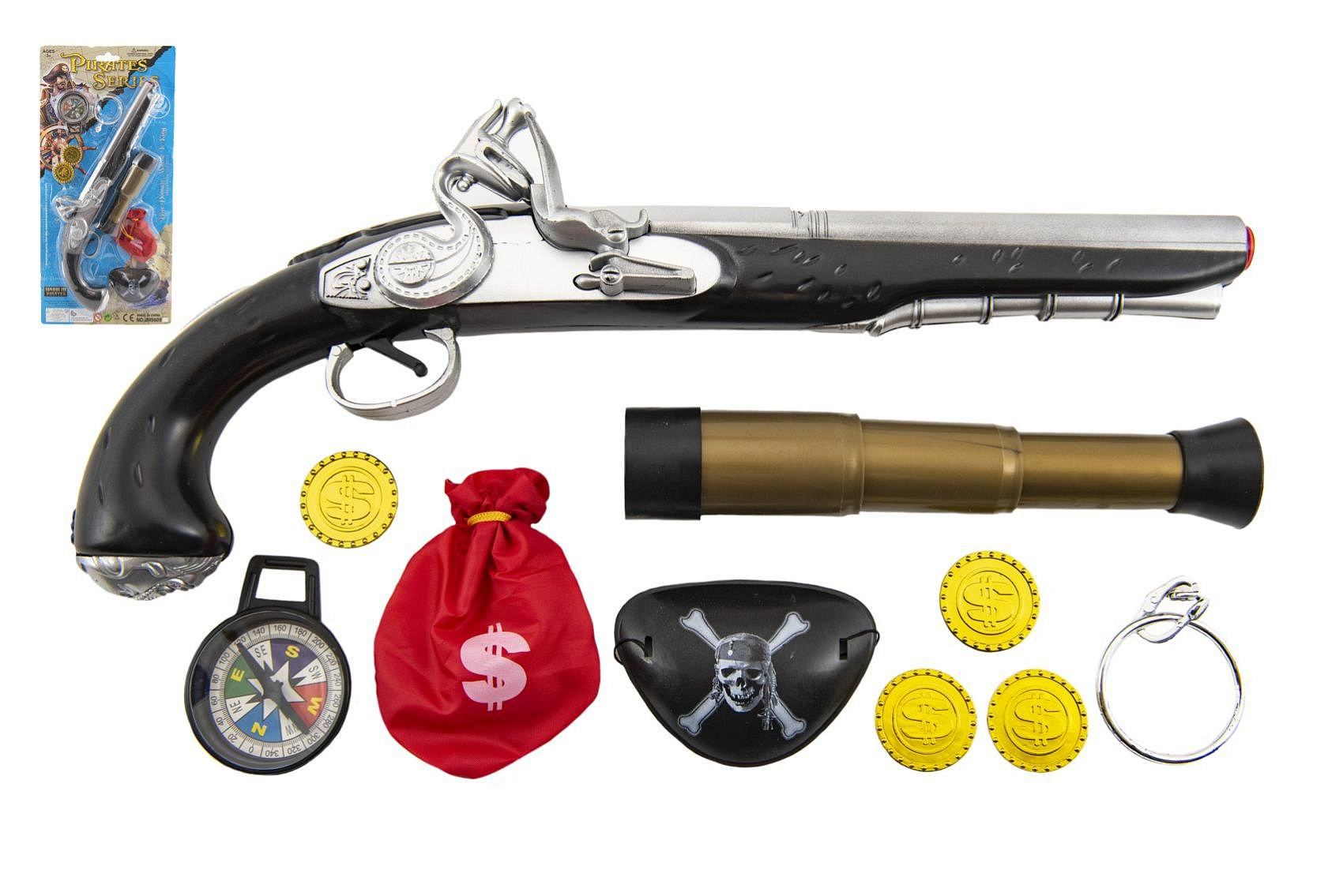 Pirátská sada- Pistole+dalekohled s doplňky plast na kartě 20x43x6cm