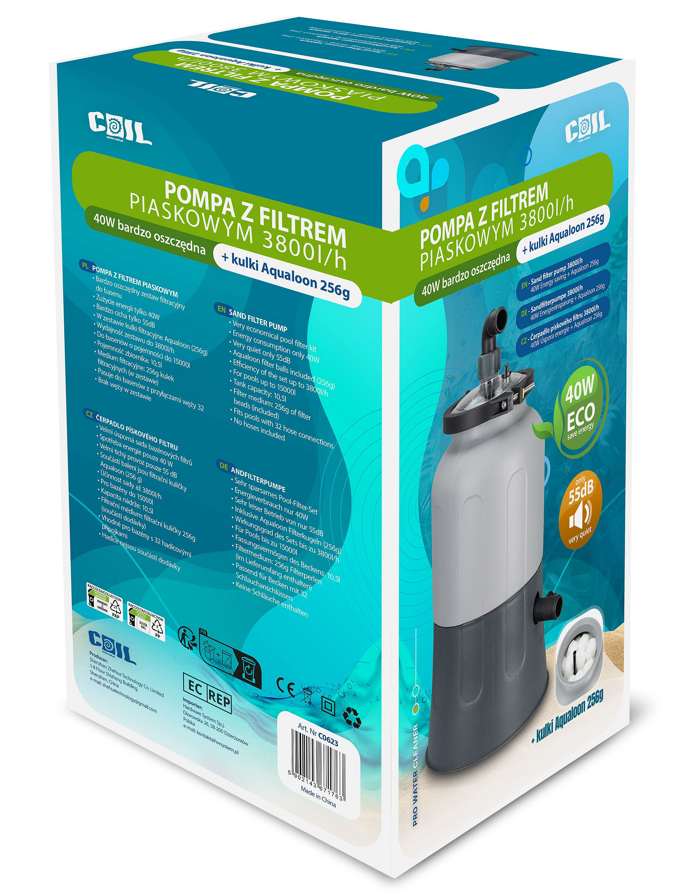 Ponořte se do světa čisté vody s naším Pískovým Filtrem s Bazénovým Čerpadlem s impozantně nízkou spotřebou energie 40W.