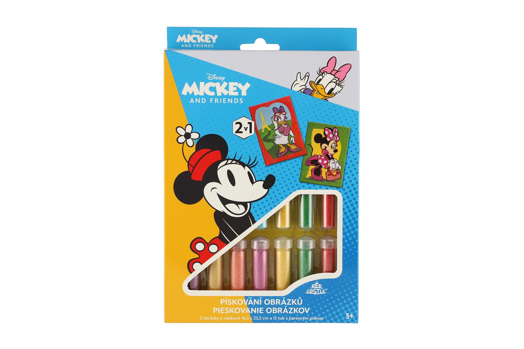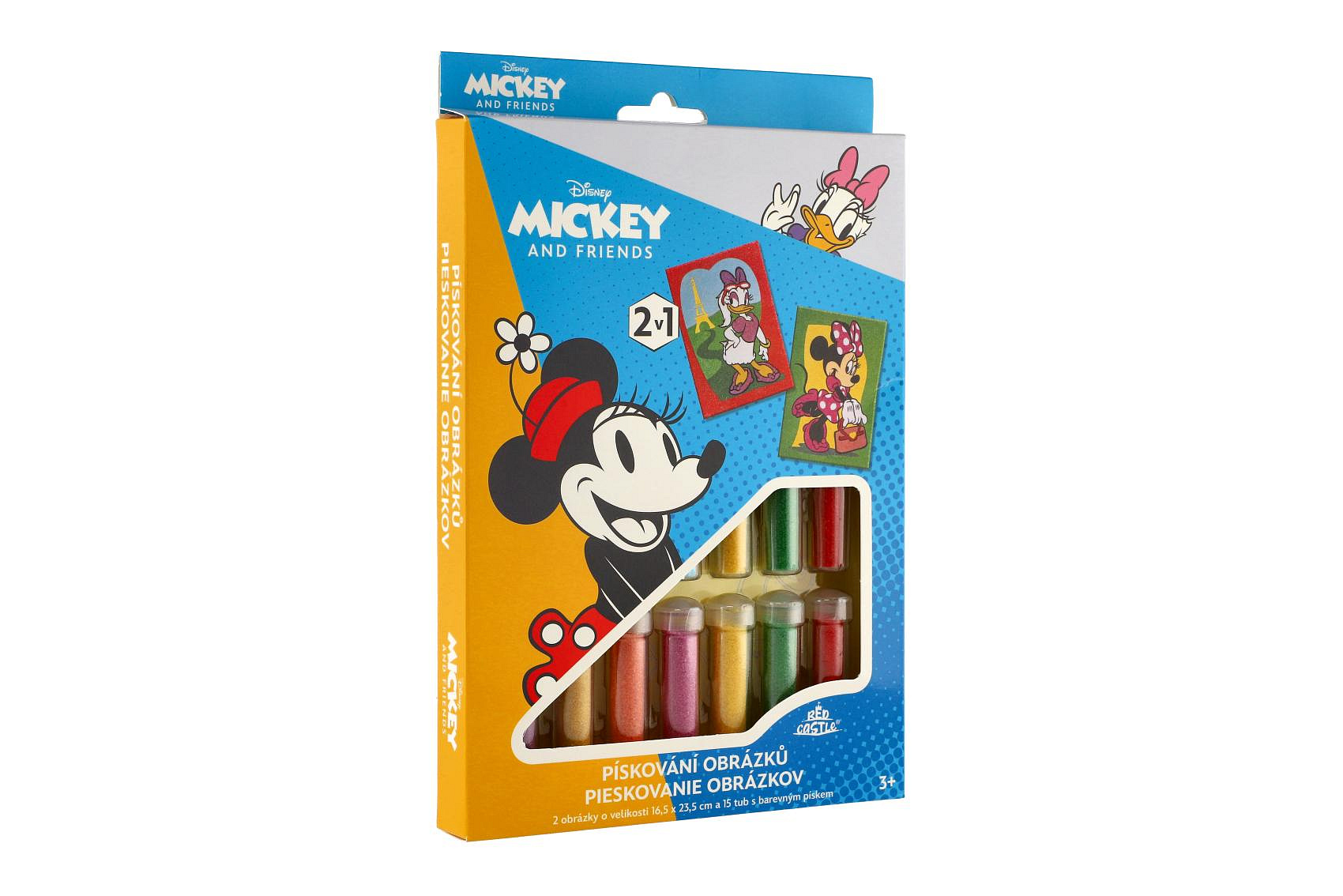 PÍSKOVÁNÍ OBRÁZKŮ je hitem po celém světě a to především z důvodu, že ať obrázek dělá dítě nebo dospělý, vždy se povede. Tato činnost navíc rozvíjí dětskou fantazii a zručnost. Tvoření obrázků spočívá v odstraňování jednotlivých vyseknutých polí a vysypávání těchto polí různě barevným dekorativním pískem. Postupně tímto způsobem vzniká krásně barevný obrázek na zeď, dekorace do dětských pokojíčků nebo dárek pro někoho blízkého. Návod k použití: 1/ Přiloženou speciální pinzetou sloupni jednotlivé části samolepícího papíru, nanes písek a přebytečný odstraň. Doporučujeme začít obrysy černým pískem. Barevný obrázek slouží jako předloha. 2/ Po vyplnění určenou barvou odstraň další část papíru pro další barvu. 3/ Dokončený obrázek můžeš umístit do přiloženého obalu. Balení obsahuje: 2 obrázky k vypískování, speciální pinzetu, 15 tub s barevným pískem a 2 obaly na vytvořené obrázky. Před použitím odstraňte obal a uchovejte pro další použití!. Rozměry balení 17 x 25 x 3 cm. Vhodné pro děti od 3 let.