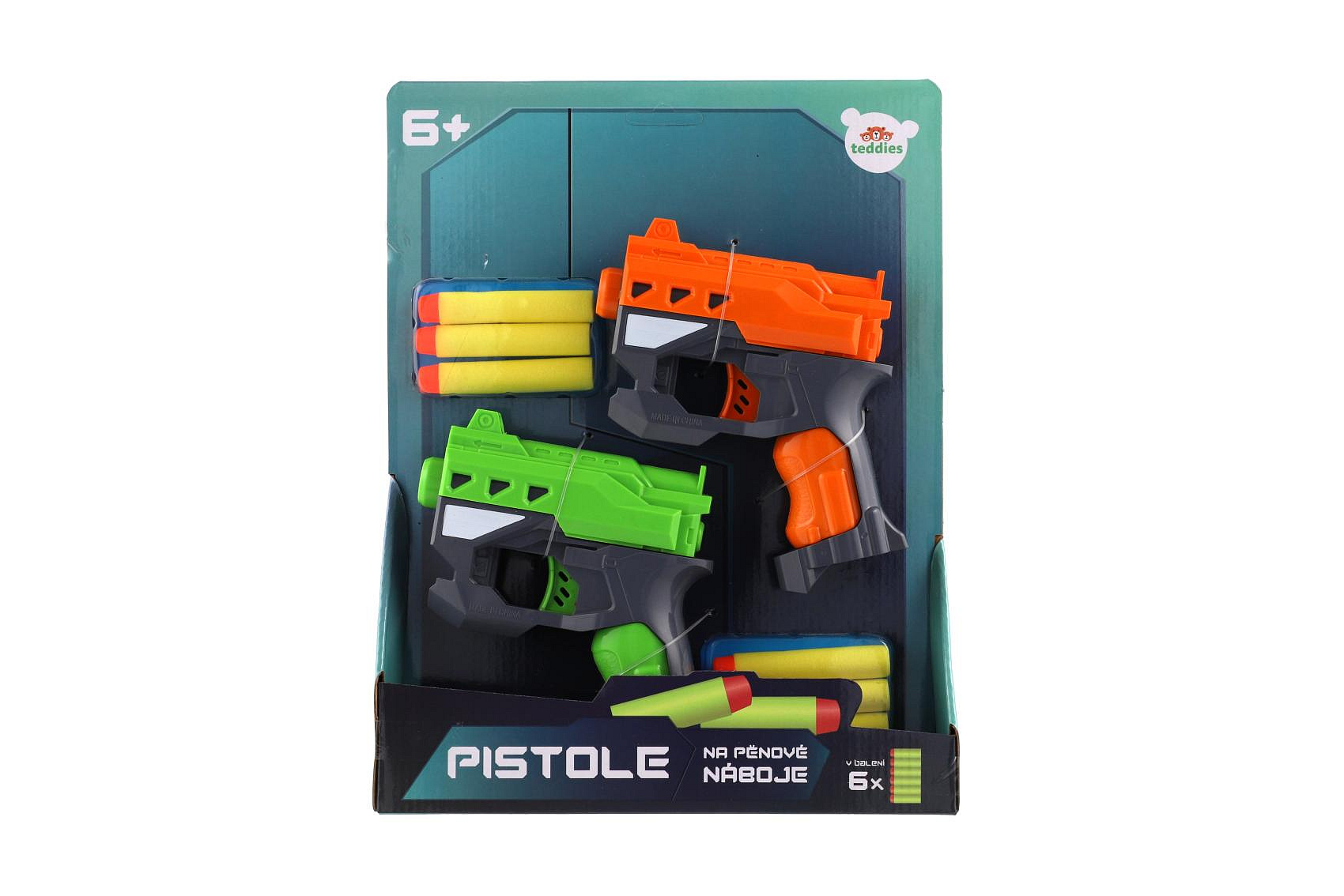 Pistole 2ks 12cm plast na pěnové náboje + 6ks nabojů na kartě