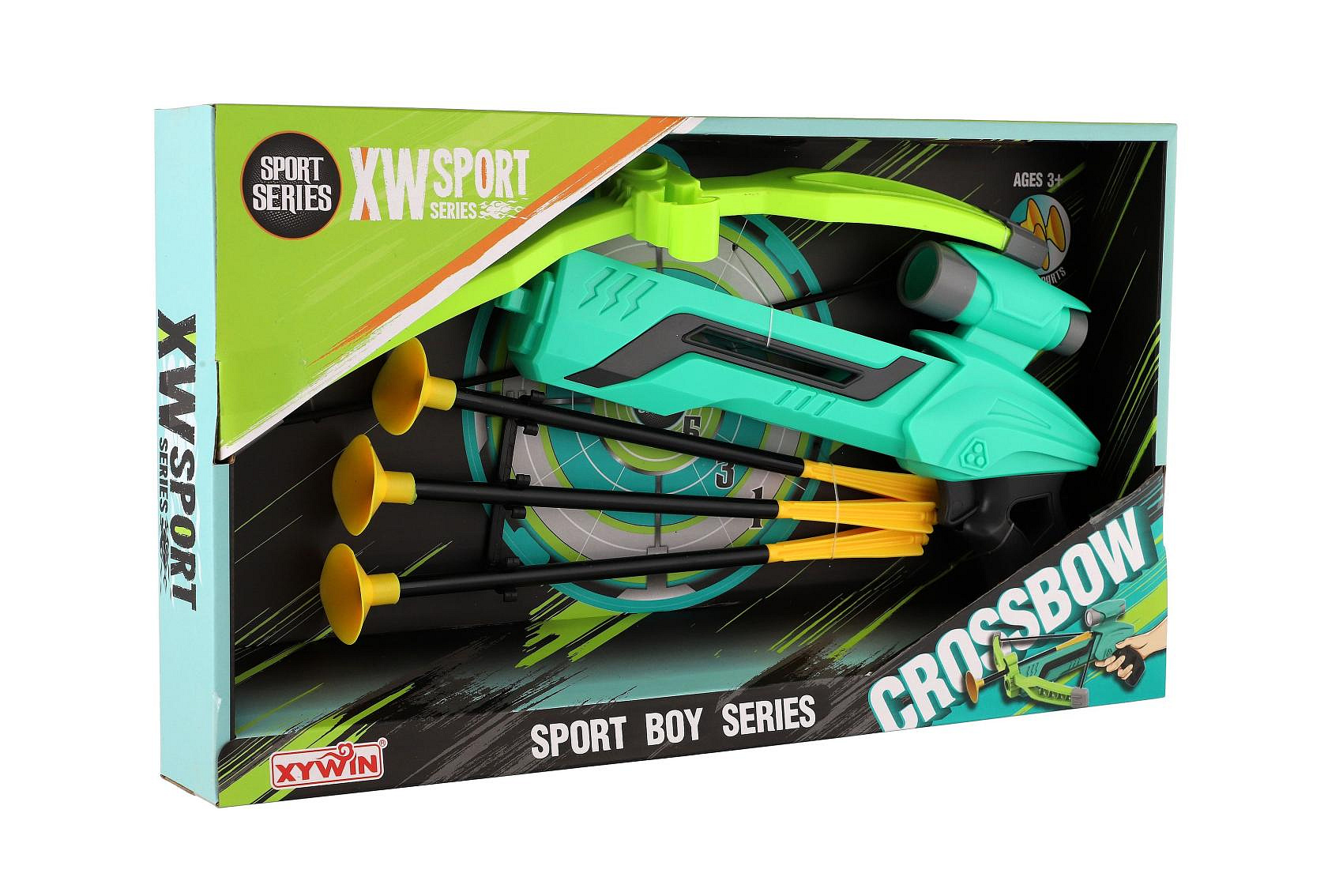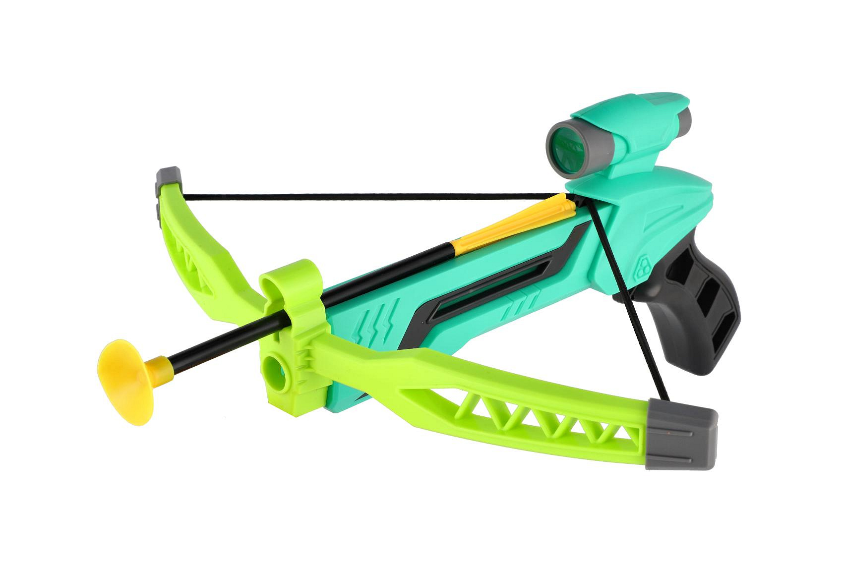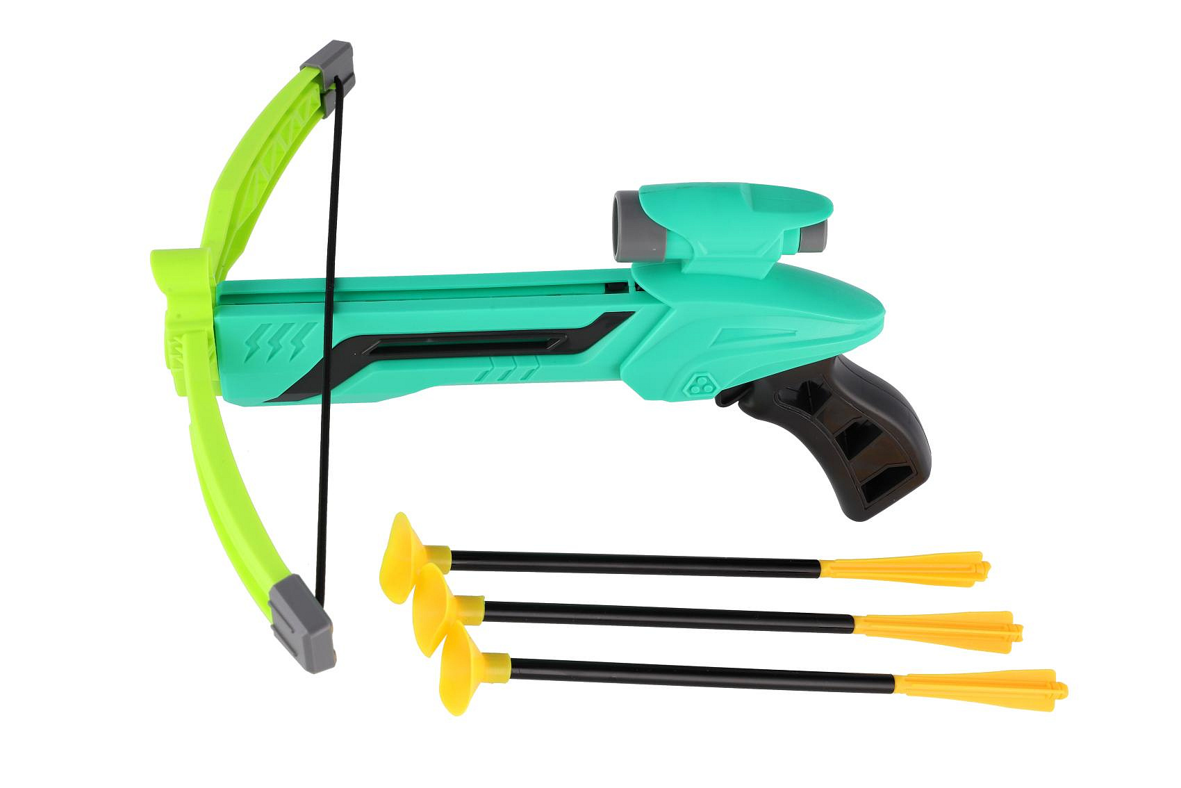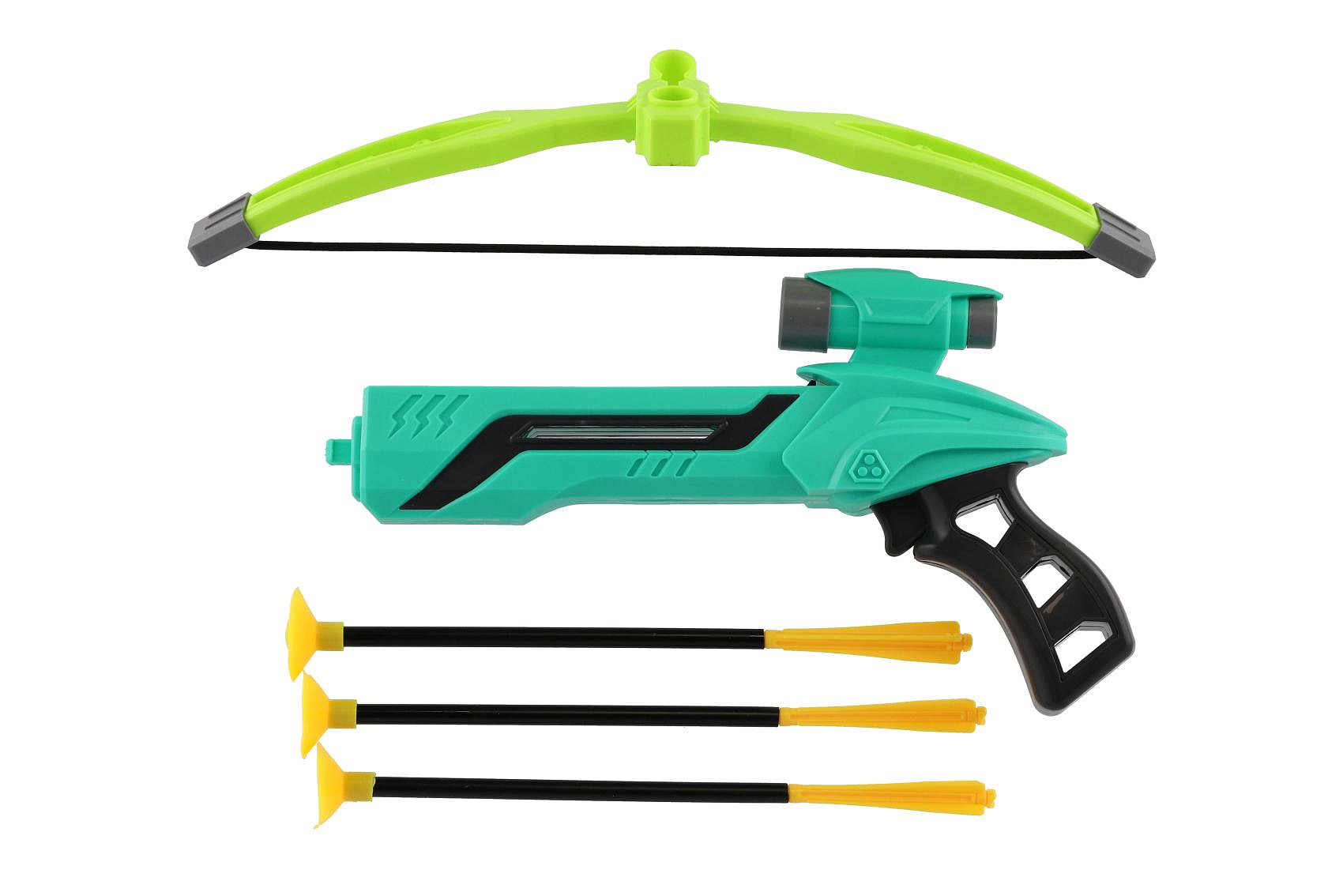Pistole/kuše s lukem na přísavky plast 25cm + šípy 3ks v krabici 36x21x5cm