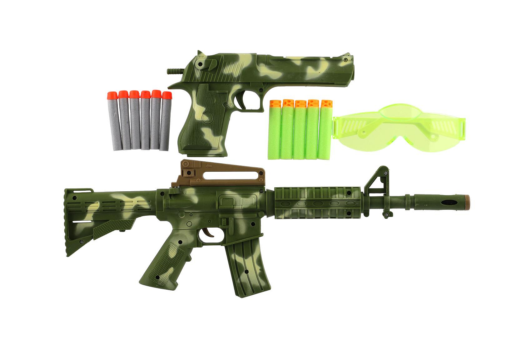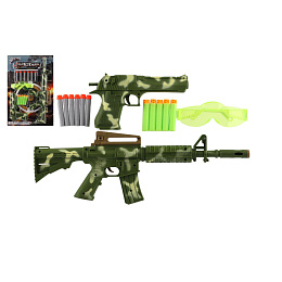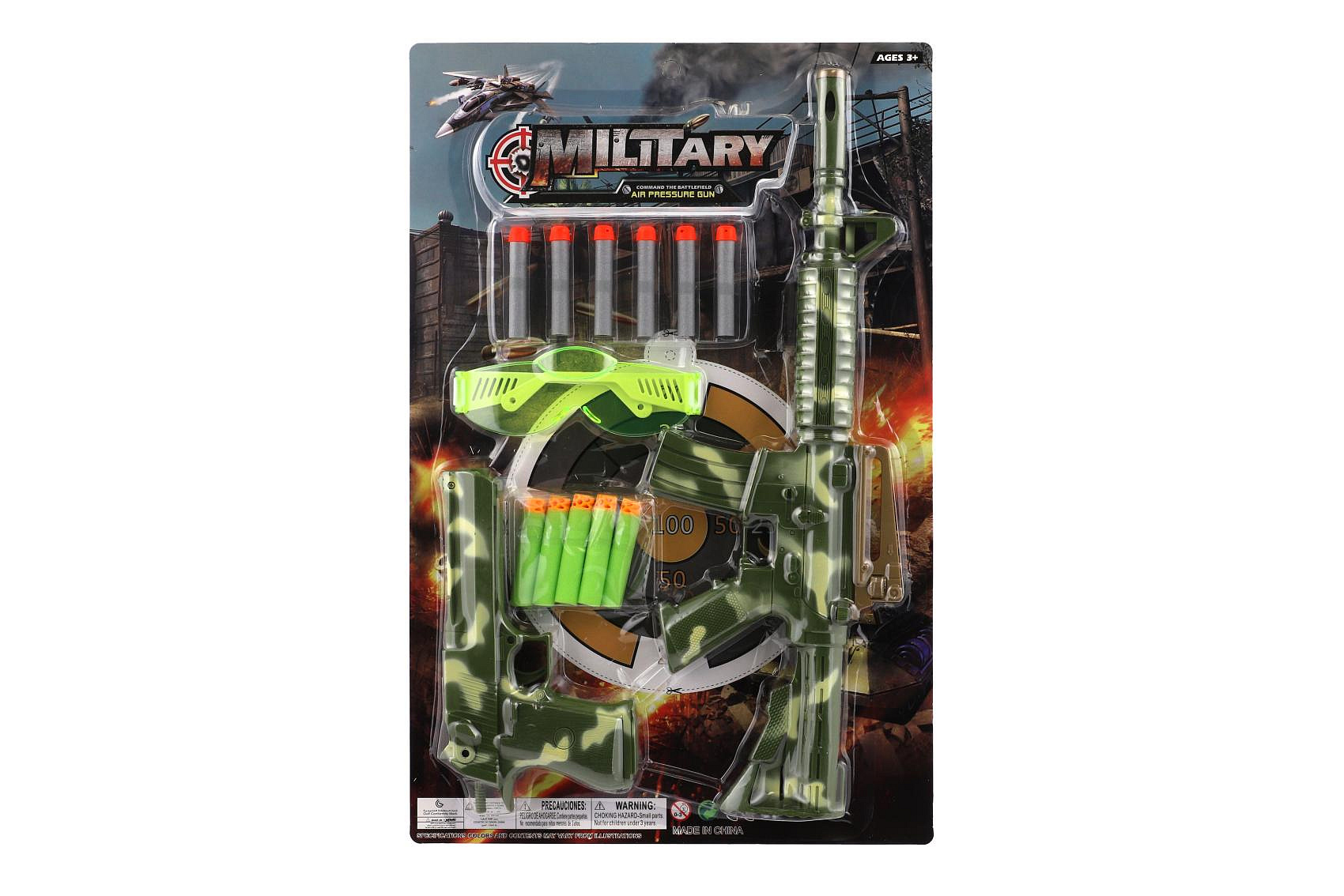 Pistole/Puška 2ks plast + pěnové náboje 11ks + brýle na kartě 30x46x4cm