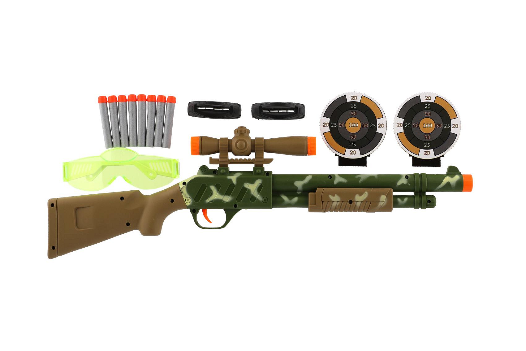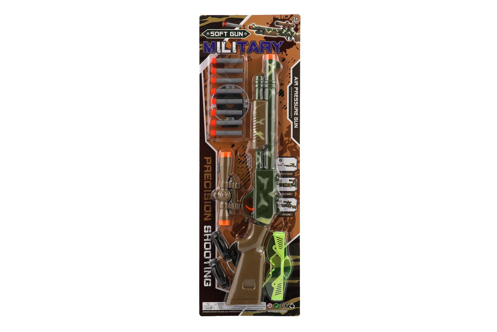 Pistole/Puška se zaměřovačem plast 51cm + pěnové náboje 8ks, brýle na kartě 21x62x3cm