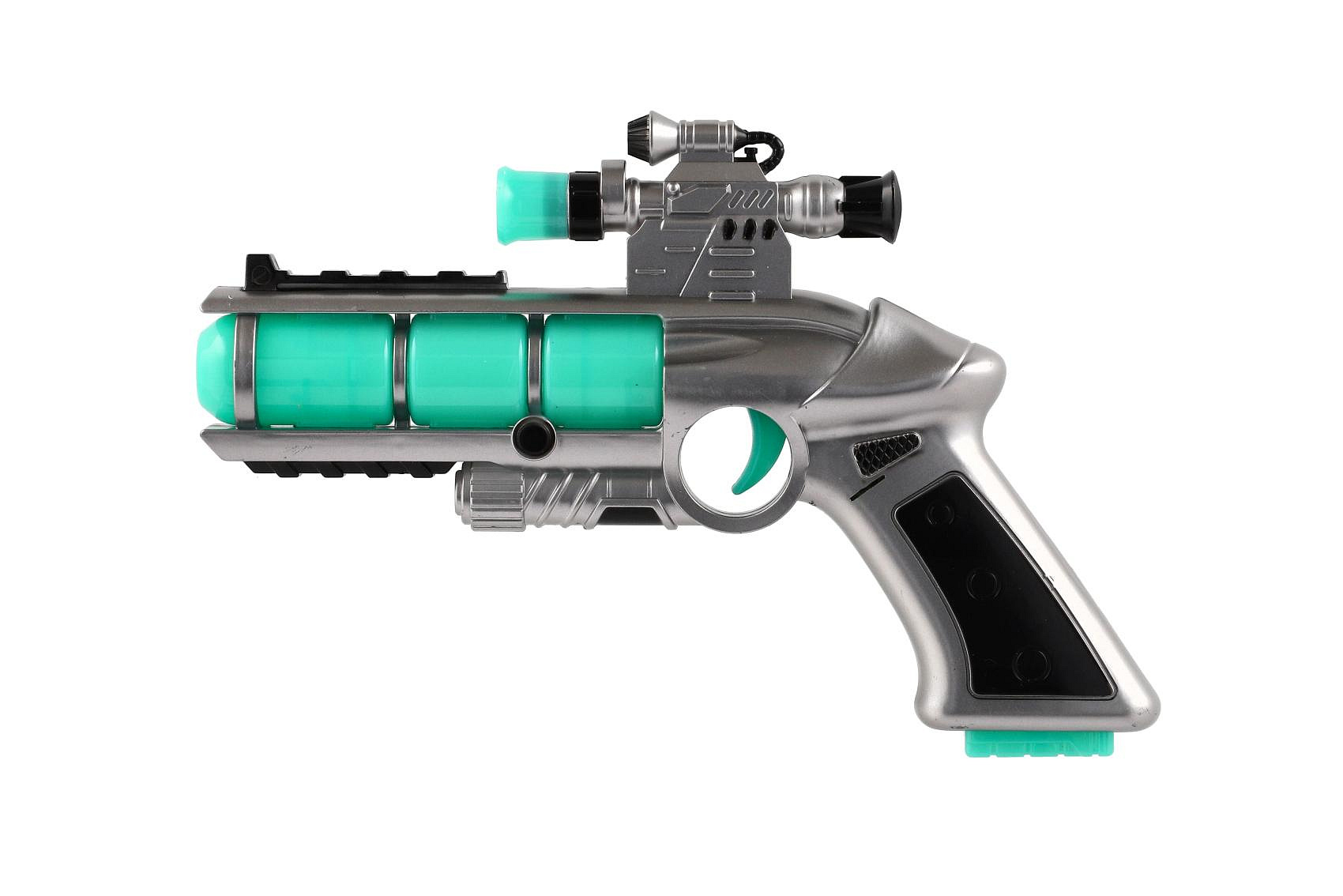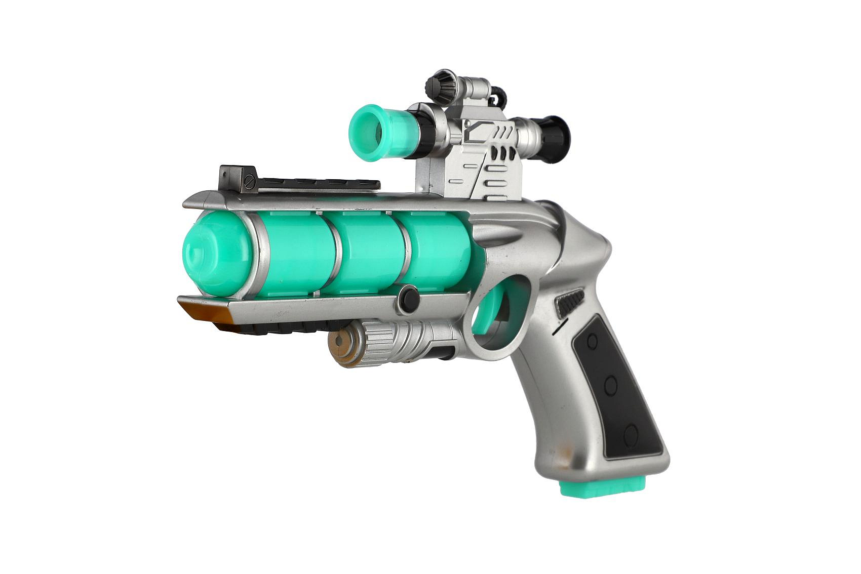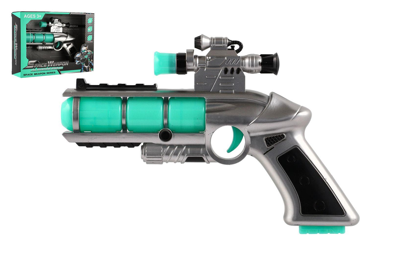 Pistole se zaměřovačem plast 20cm na baterie se zvukem a se světlem v krabici