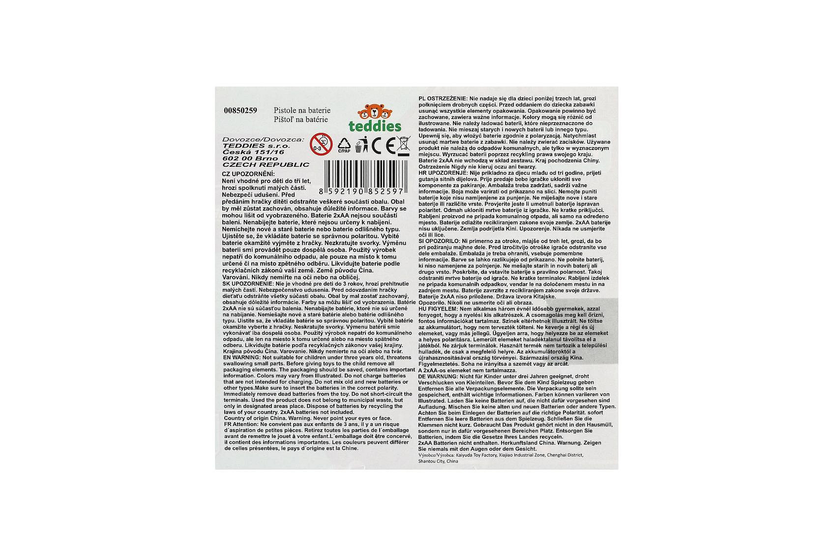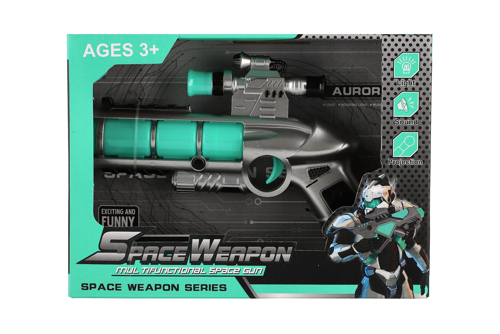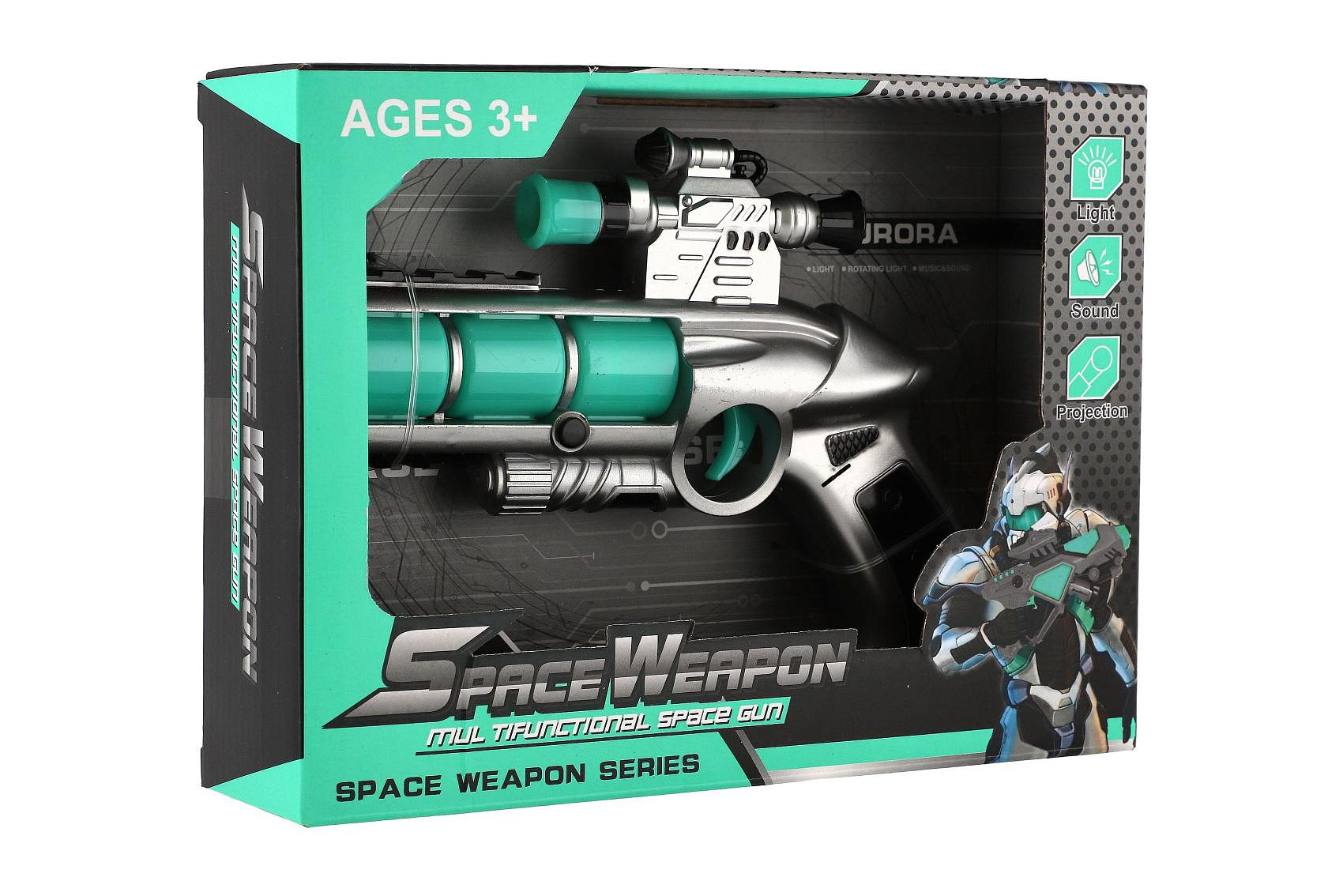 Pistole se zaměřovačem plast 20cm na baterie se zvukem a se světlem v krabici
