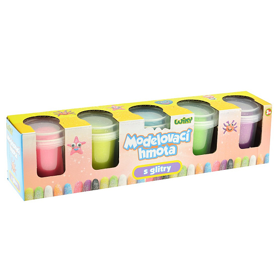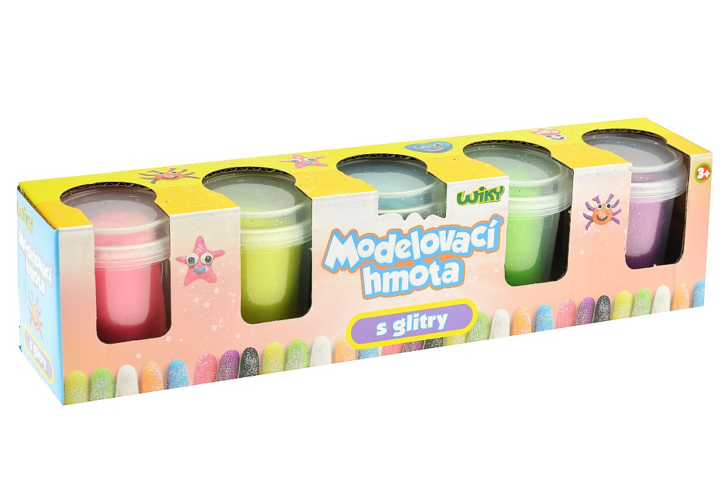 Popis Plastelína/modelína s glitry 5x56g v kelímku v krabičce 27x7x6cm
