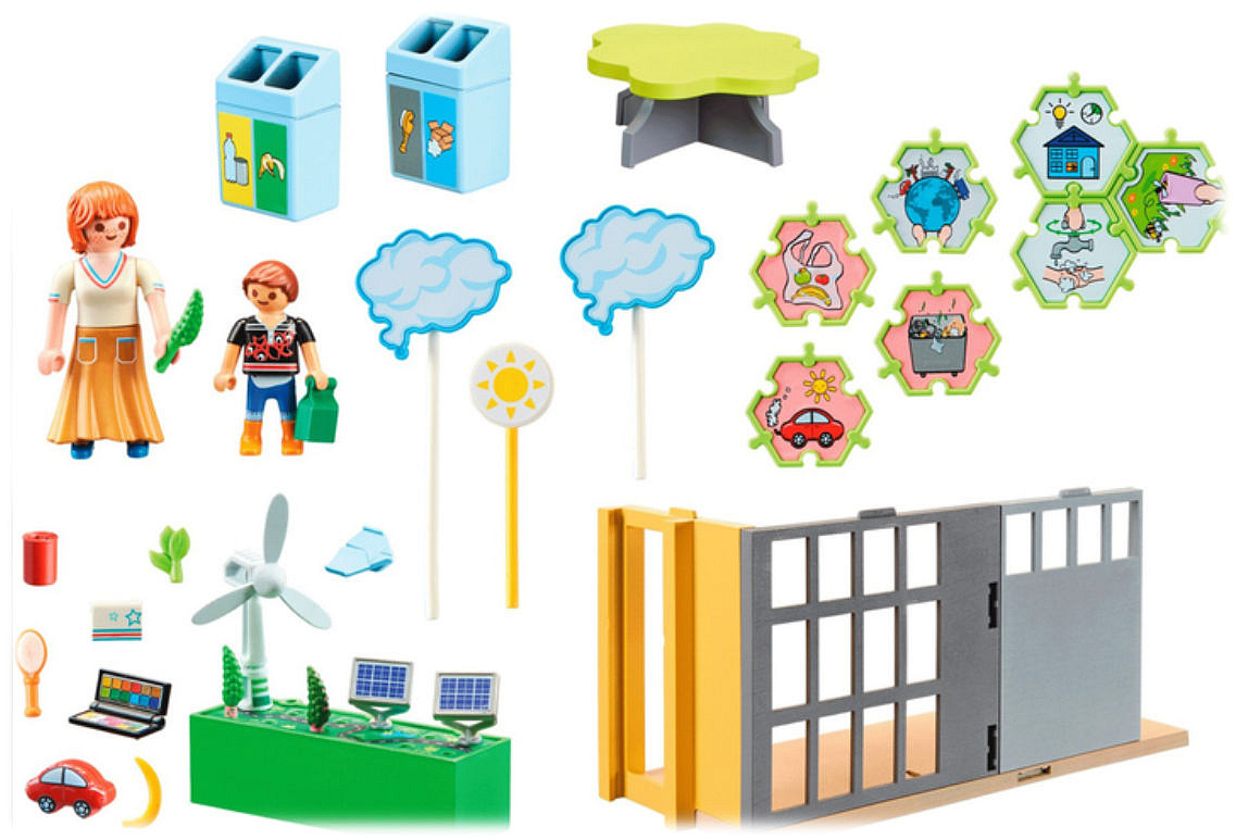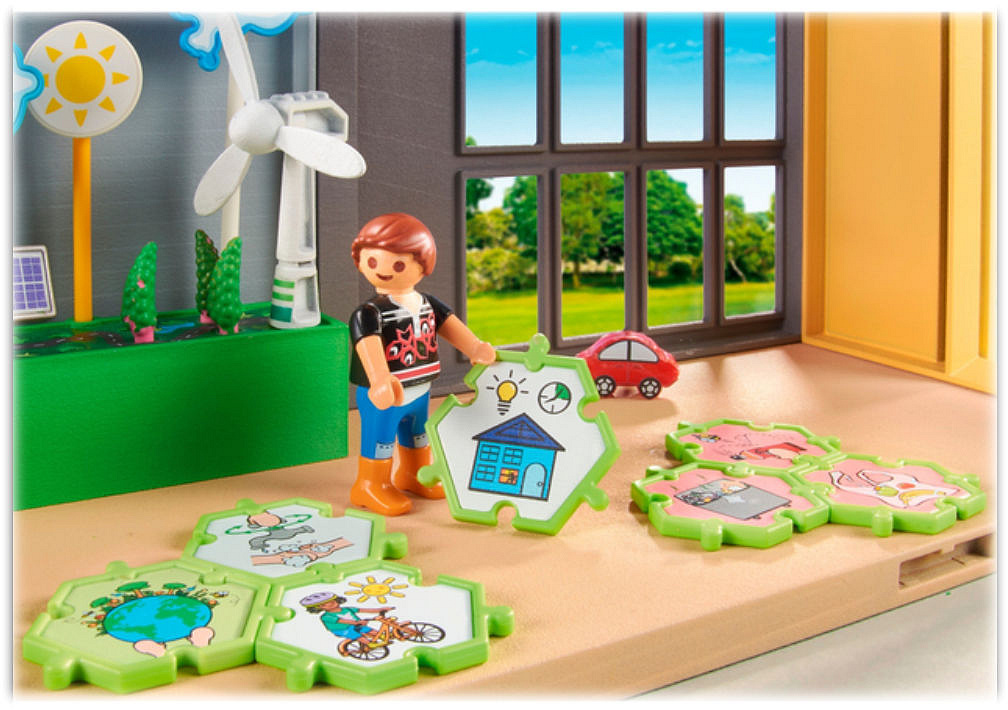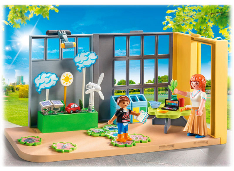 Vítejte ve třídě budoucnosti! Zde se studenti nejen učí užitečné každodenní znalosti, ale také zahrnují do učebního plánu témata týkající se klimatu a ochrany životního prostředí. Jak číst klimatický graf a jak správně třídit odpad? Je to vysvětleno a procvičeno nejen teoreticky, ale také velmi praktickým způsobem za použití existujících kontejnerů. Vzrušující hlavolam s úkoly týkajícími se klimatu povzbuzuje děti k uvědomělému chování v oblasti ochrany životního prostředí zábavným způsobem.