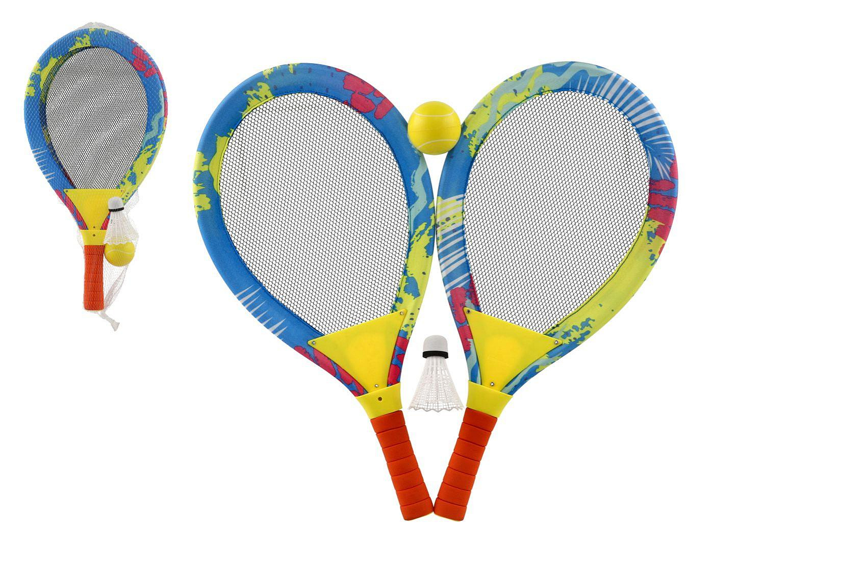 Sada vhodná i pro menší hráče! Díky raketám z lehkého materiálu si mohou tenis zahrát i menší členové rodiny nebo začínající tenisté. Obsahuje míček z molitanu a badmintonový košíček, takže dětem nehrozí žádný úraz. Při hře si užijete spoustu legrace a také si k tomu trošku zasportujete. Rozměry balení 27 x 54 x 6 cm. Vhodné od 3 let.