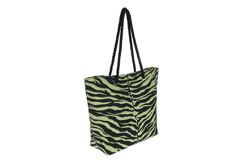 Textilní plážová taška Safari s motivem tygr v pistáciové barvě.