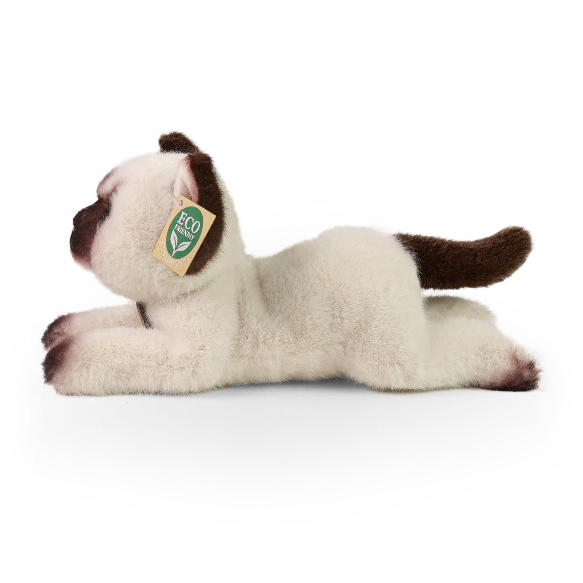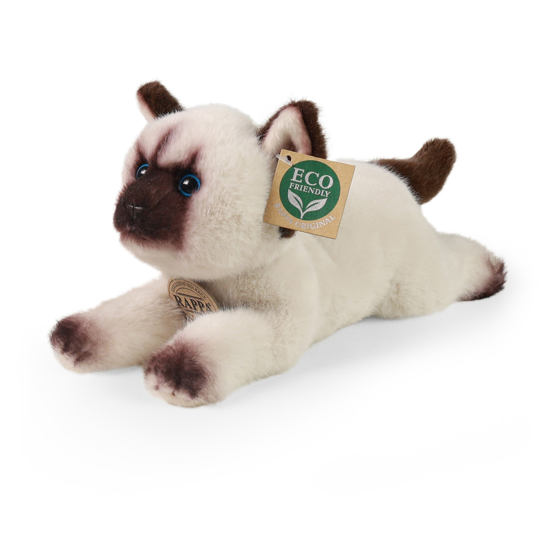 Plyšová kočka himalájská měří 27 cm a díky těm nejkvalitnějším materiálům se řadí do Exkluzivní kolekce plyšových hraček značky Rappa. Díky ručnímu zpracování každého kusu navíc vypadá jako živá. Proč označení ECO-FRIENDLY? Rappa si je vědoma všech dopadů na životního prostředí, zaměřuje se na udržitelnost a omezení používání plastů na minimum. Proto je výplň hraček vyrobena z recyklovaných materiálů, zejména PET lahví. Ta je však zcela nezávadná a vhodná i pro děti od narození. FUN FACT: Věděli jste, že jejich tmavé odznaky na obličeji, uších, tlapkách a ocasu vznikají díky enzymu citlivému na teplotu?