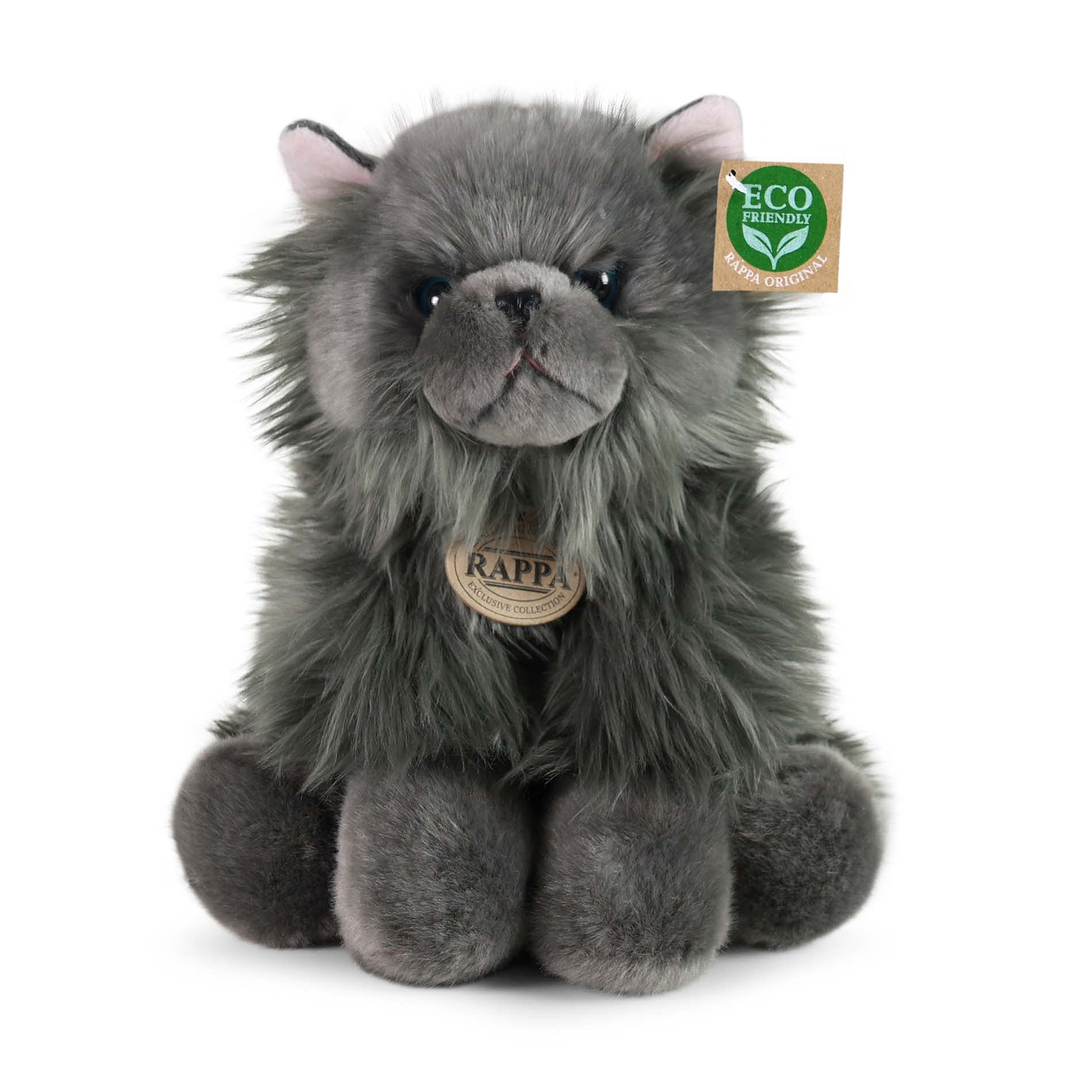 Plyšová kočka rasy perská měří 30 cm a díky těm nejkvalitnějším materiálům se řadí do Exkluzivní kolekce plyšových hraček značky Rappa. Díky ručnímu zpracování každého kusu navíc vypadá jako živá. Proč označení ECO-FRIENDLY? Rappa si je vědoma všech dopadů na životního prostředí, zaměřuje se na udržitelnost a omezení používání plastů na minimum. Proto je výplň hraček vyrobena z recyklovaných materiálů, zejména PET lahví. Ta je však zcela nezávadná a vhodná i pro děti od narození. FUN FACT: Věděli jste, že perské kočky mají velmi klidnou a tichou povahu?