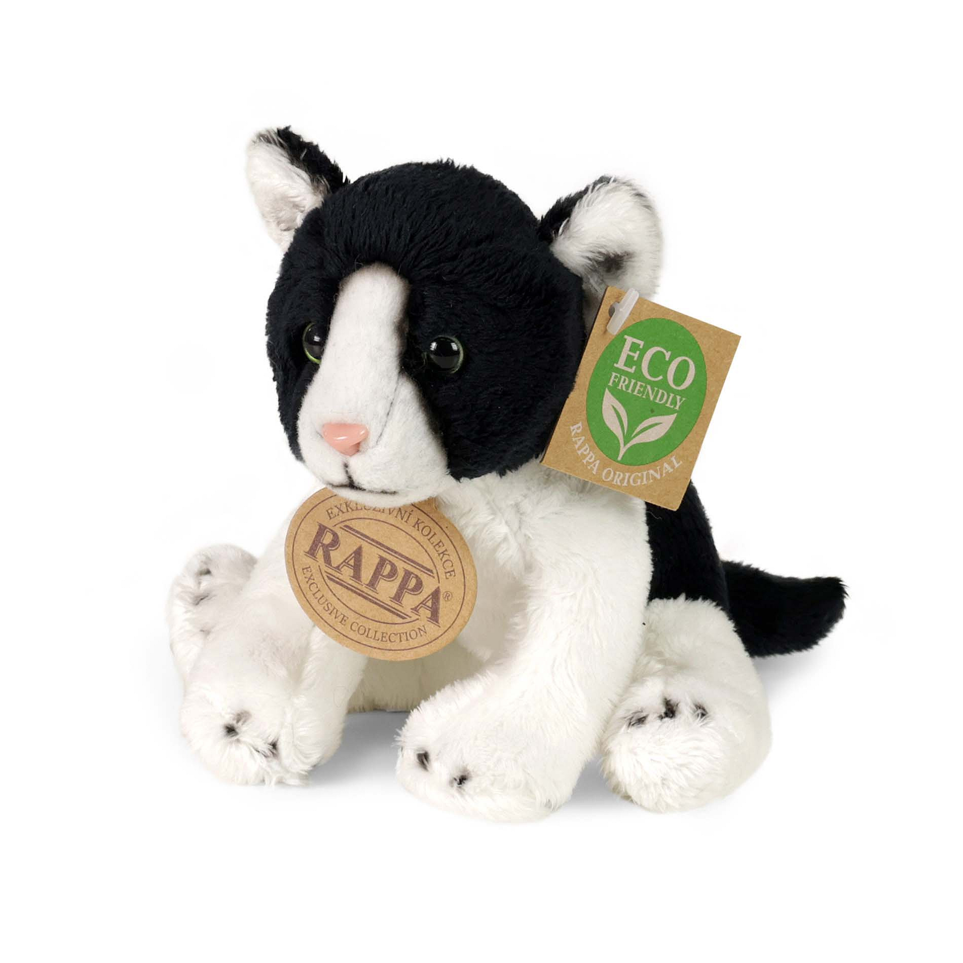 Plyšová kočka měří 14 cm a díky těm nejkvalitnějším materiálům se řadí do Exkluzivní kolekce plyšových hraček značky Rappa. Díky ručnímu zpracování každého kusu navíc vypadá jako živá. Proč označení ECO-FRIENDLY? Rappa si je vědoma všech dopadů na životního prostředí, zaměřuje se na udržitelnost a omezení používání plastů na minimum. Proto je výplň hraček vyrobena z recyklovaných materiálů, zejména PET lahví. Ta je však zcela nezávadná a vhodná i pro děti od narození. Cena je za 1 kus. FUN FACT: Věděli jste, že kočky umí příst i při nádechu i při výdechu a ne vždy to znamená, že jsou spokojené? Cena je uvedena za 1 ks.