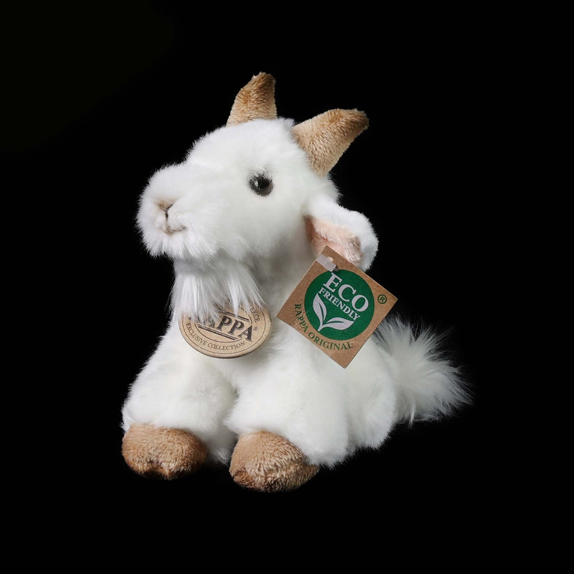 Plyšová koza měří 16 cm a díky těm nejkvalitnějším materiálům se řadí do Exkluzivní kolekce plyšových hraček značky Rappa. Díky ručnímu zpracování každého kusu navíc vypadá jako živá. Proč označení ECO-FRIENDLY? Rappa si je vědoma všech dopadů na životního prostředí, zaměřuje se na udržitelnost a omezení používání plastů na minimum. Proto je výplň hraček vyrobena z recyklovaných materiálů, zejména PET lahví. Ta je však zcela nezávadná a vhodná i pro děti od narození. FUN FACT: Věděli jste, že kozy mají obdélníkové zorničky v očích?