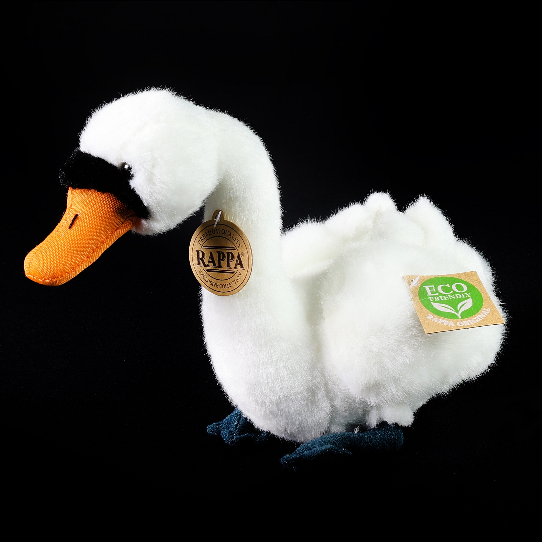 Plyšová labuť měří 20 cm a díky těm nejkvalitnějším materiálům se řadí do Exkluzivní kolekce plyšových hraček značky Rappa. Díky ručnímu zpracování každého kusu navíc vypadá jako živá. Proč označení ECO-FRIENDLY? Rappa si je vědoma všech dopadů na životního prostředí, zaměřuje se na udržitelnost a omezení používání plastů na minimum. Proto je výplň hraček vyrobena z recyklovaných materiálů, zejména PET lahví. Ta je však zcela nezávadná a vhodná i pro děti od narození. FUN FACT: Věděli jste, že labutě jsou většinou velmi věrné jednomu partnerovi po celý život?