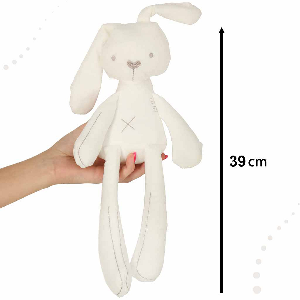 Ten pluszak nie narzuca scenariusza - pozwala dziecku go stworzyć. Króliczek pobudza ciekawość i kreatywność. Maskotka szybko staje się kimś więcej niż zabawką - to kompan przygód, sekretów i snów. Zaprojektowany z myślą o najmłodszych, pluszowy króliczek daje dziecku poczucie bezpieczeństwa i bliskości w każdej sytuacji.