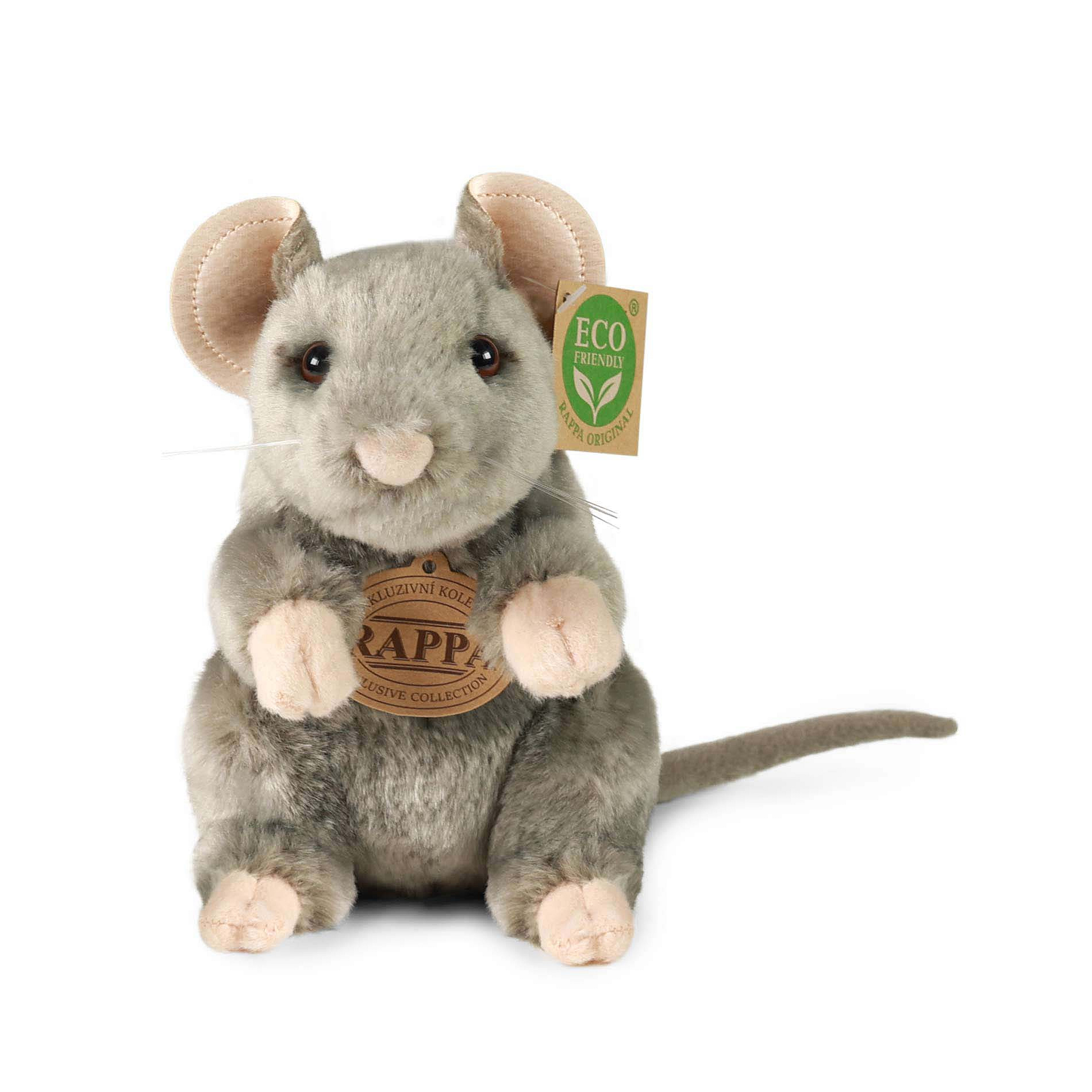 Plyšová myš měří 16 cm a díky těm nejkvalitnějším materiálům se řadí do Exkluzivní kolekce plyšových hraček značky Rappa. Díky ručnímu zpracování každého kusu navíc vypadá jako živá. Proč označení ECO-FRIENDLY? Rappa si je vědoma všech dopadů na životního prostředí, zaměřuje se na udržitelnost a omezení používání plastů na minimum. Proto je výplň hraček vyrobena z recyklovaných materiálů, zejména PET lahví. Ta je však zcela nezávadná a vhodná i pro děti od narození. FUN FACT: Věděli jste, že myši zpívají? Ačkoli jejich zpěv není slyšitelný pro lidské uši, vydávají ultrazvukové zvuky, které jsou často používány k dorozumívání.