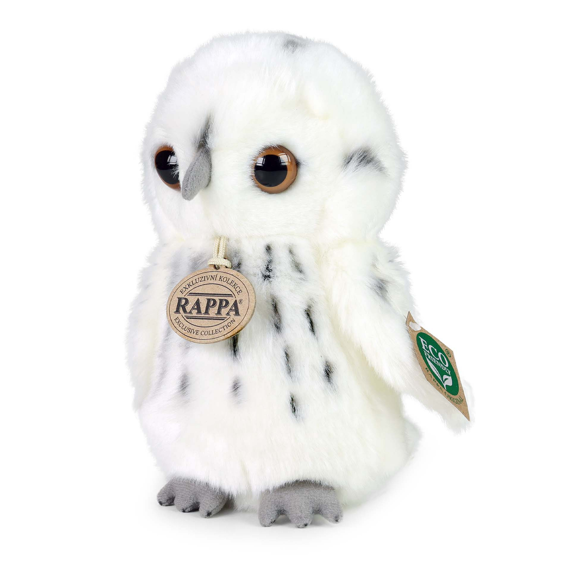 Plyšová sova sněžná měří 18 cm a díky těm nejkvalitnějším materiálům se řadí do Exkluzivní kolekce plyšových hraček značky Rappa. Díky ručnímu zpracování každého kusu navíc vypadá jako živá. Proč označení ECO-FRIENDLY? Rappa si je vědoma všech dopadů na životního prostředí, zaměřuje se na udržitelnost a omezení používání plastů na minimum. Proto je výplň hraček vyrobena z recyklovaných materiálů, zejména PET lahví. Ta je však zcela nezávadná a vhodná i pro děti od narození. FUN FACT: Věděli jste, že tento dravec sovice sněžná má velmi silné a ostré drápy, kterými chytá svou kořist?