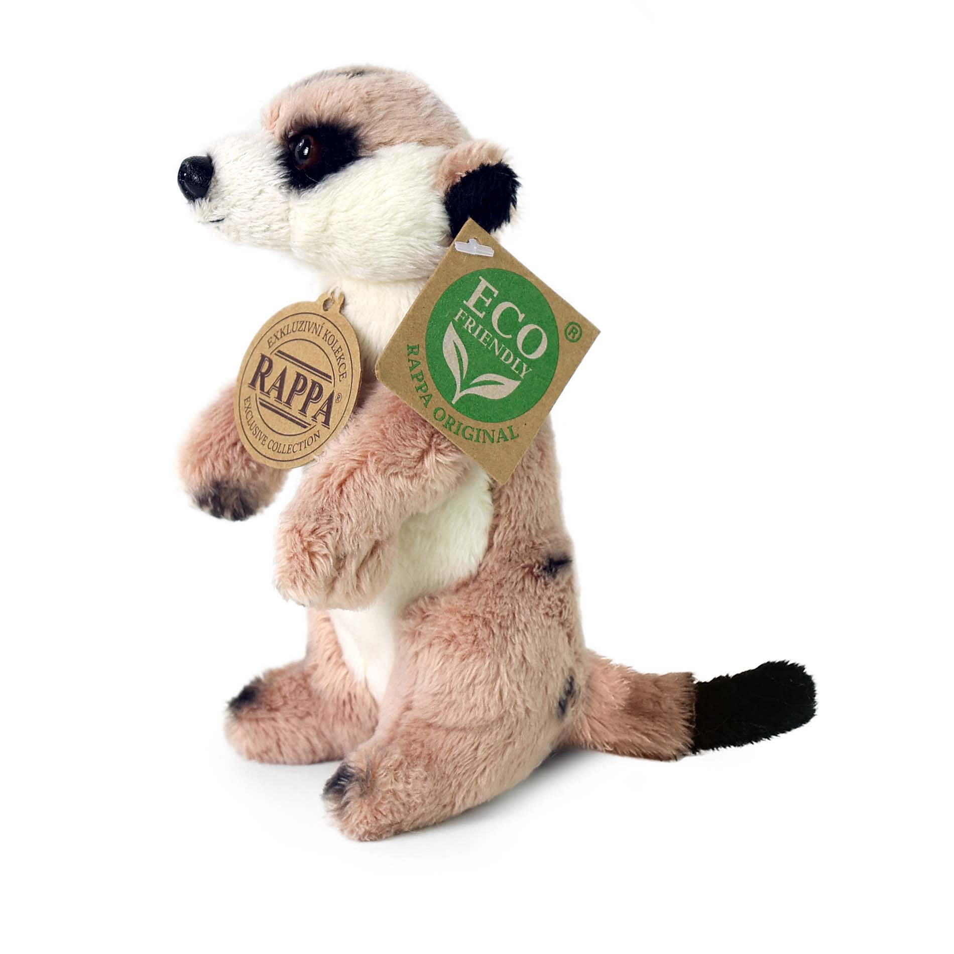 Plyšová surikata měří 14 cm a díky těm nejkvalitnějším materiálům se řadí do Exkluzivní kolekce plyšových hraček značky Rappa. Díky ručnímu zpracování každého kusu navíc vypadá jako živá. Proč označení ECO-FRIENDLY? Rappa si je vědoma všech dopadů na životního prostředí, zaměřuje se na udržitelnost a omezení používání plastů na minimum. Proto je výplň hraček vyrobena z recyklovaných materiálů, zejména PET lahví. Ta je však zcela nezávadná a vhodná i pro děti od narození. FUN FACT: Věděli jste, že v každé skupině surikat je vždy někdo na stráži – stojí vzpřímeně a dává pozor na predátory?