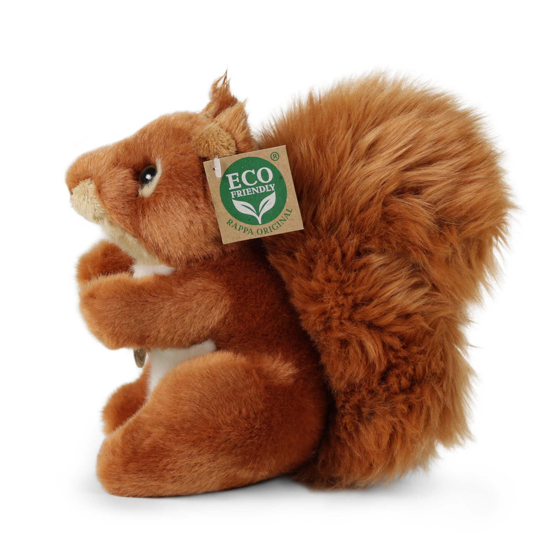 Plyšová veverka měří 18 cm a díky těm nejkvalitnějším materiálům se řadí do Exkluzivní kolekce plyšových hraček značky Rappa. Díky ručnímu zpracování každého kusu navíc vypadá jako živá. Proč označení ECO-FRIENDLY? Rappa si je vědoma všech dopadů na životního prostředí, zaměřuje se na udržitelnost a omezení používání plastů na minimum. Proto je výplň hraček vyrobena z recyklovaných materiálů, zejména PET lahví. Ta je však zcela nezávadná a vhodná i pro děti od narození. FUN FACT: Věděli jste, že veverky si často zakopávají oříšky a semínka na horší časy?