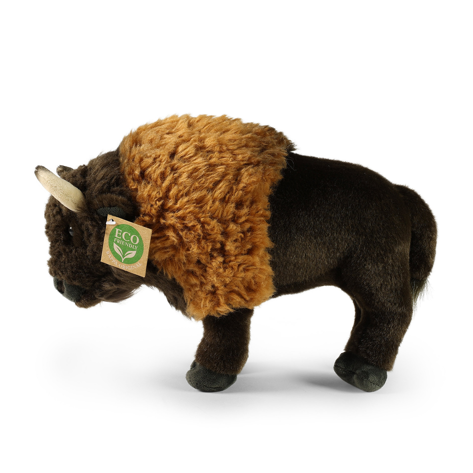 Plyšový bizon měří 30 cm a díky těm nejkvalitnějším materiálům se řadí do Exkluzivní kolekce plyšových hraček značky Rappa. Díky ručnímu zpracování každého kusu navíc vypadá jako živý. Proč označení ECO-FRIENDLY? Rappa si je vědoma všech dopadů na životního prostředí, zaměřuje se na udržitelnost a omezení používání plastů na minimum. Proto je výplň hraček vyrobena z recyklovaných materiálů, zejména PET lahví. Ta je však zcela nezávadná a vhodná i pro děti od narození. FUN FACT: Věděli jste, že bizon je tak silný, že dokáže běžet rychlostí až 60 km/h, přestože váží i přes tunu?