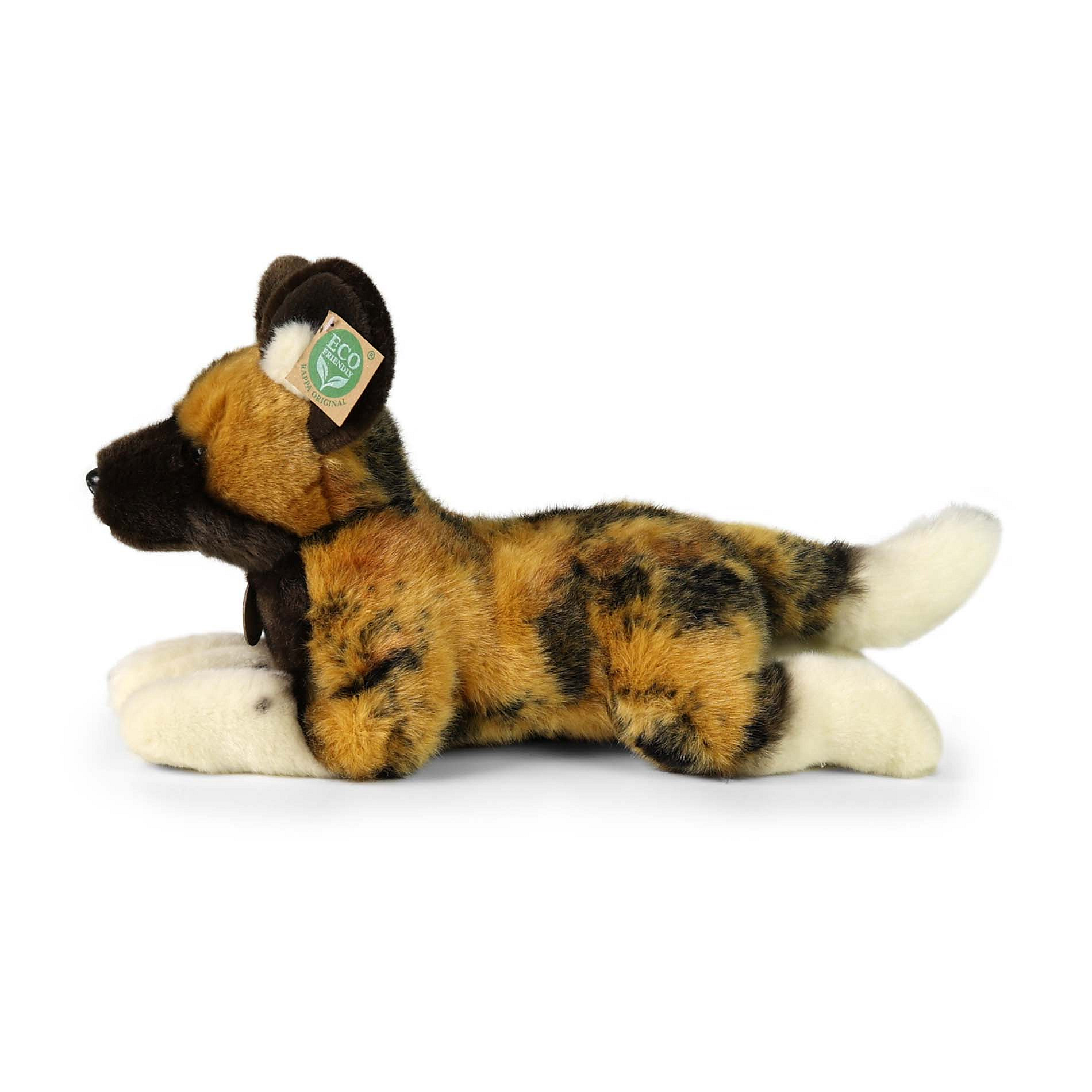 Plyšový pes divoký hyenovitý měří 35 cm a díky těm nejkvalitnějším materiálům se řadí do Exkluzivní kolekce plyšových hraček značky Rappa. Díky ručnímu zpracování každého kusu navíc vypadá jako živý. Proč označení ECO-FRIENDLY? Rappa si je vědoma všech dopadů na životního prostředí, zaměřuje se na udržitelnost a omezení používání plastů na minimum. Proto je výplň hraček vyrobena z recyklovaných materiálů, zejména PET lahví. Ta je však zcela nezávadná a vhodná i pro děti od narození. FUN FACT: Věděli jste, že pes hyenovitý, známý také jako africký divoký pes má nejefektivnější lov ze všech savců?