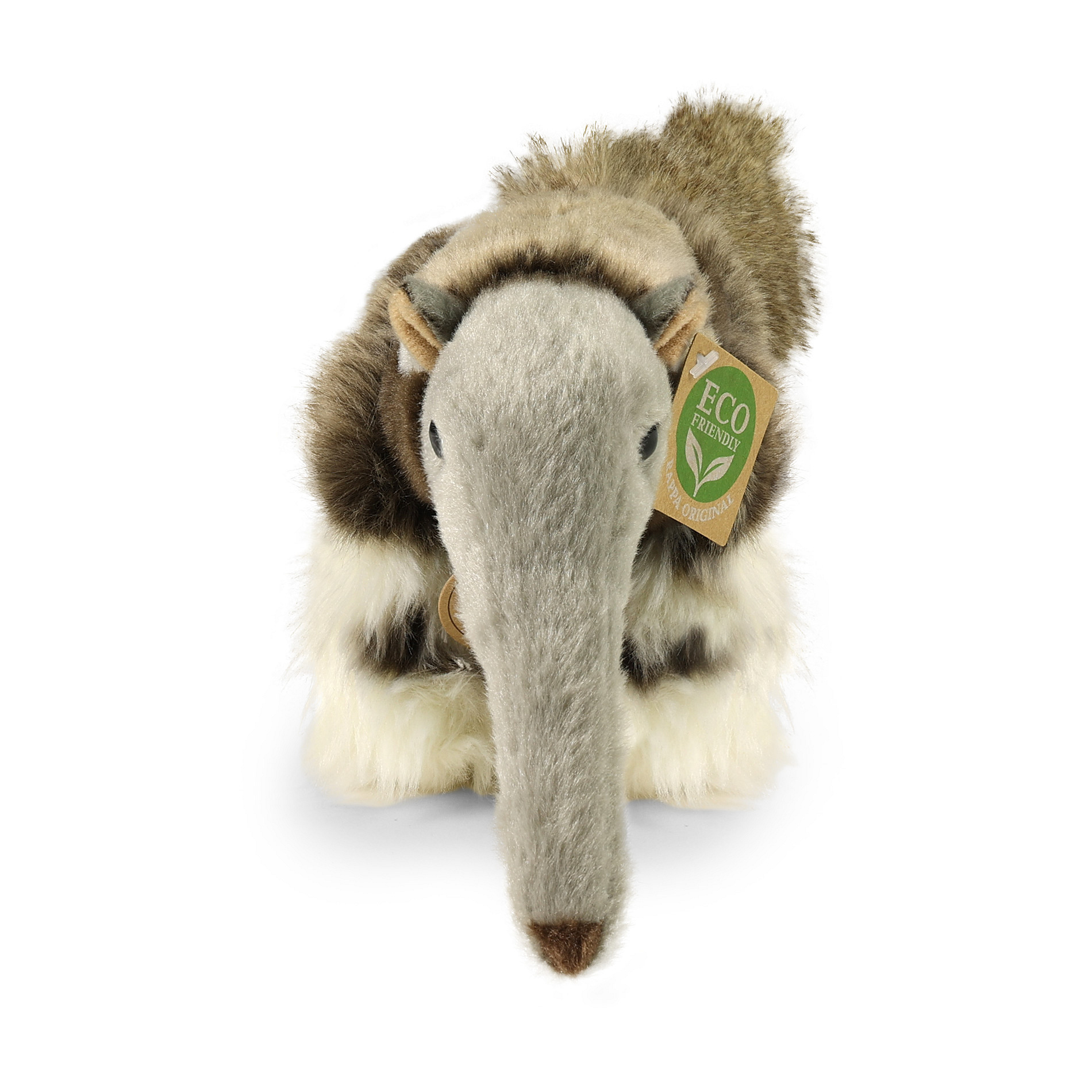 Plyšový mravenečník měří 25 cm a díky těm nejkvalitnějším materiálům se řadí do Exkluzivní kolekce plyšových hraček značky Rappa. Díky ručnímu zpracování každého kusu navíc vypadá jako živý. Proč označení ECO-FRIENDLY? Rappa si je vědoma všech dopadů na životního prostředí, zaměřuje se na udržitelnost a omezení používání plastů na minimum. Proto je výplň hraček vyrobena z recyklovaných materiálů, zejména PET lahví. Ta je však zcela nezávadná a vhodná i pro děti od narození. FUN FACT: Věděli jste, že mravenečník má extrémně dlouhý a lepkavý jazyk, který může mít až kolem 60 cm?