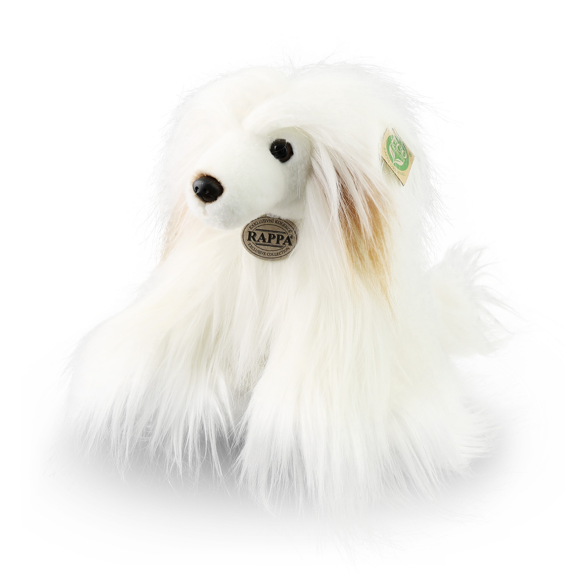 Plyšový pes rasy čínský chocholatý - labutěnka měří 30 cm a díky těm nejkvalitnějším materiálům se řadí do Exkluzivní kolekce plyšových hraček značky Rappa. Díky ručnímu zpracování každého kusu navíc vypadá jako živý. Proč označení ECO-FRIENDLY? Rappa si je vědoma všech dopadů na životního prostředí, zaměřuje se na udržitelnost a omezení používání plastů na minimum. Proto je výplň hraček vyrobena z recyklovaných materiálů, zejména PET lahví. Ta je však zcela nezávadná a vhodná i pro děti od narození. FUN FACT: Věděli jste, že Labutěnky jsou známé svou hravostí, přítulností a loajalitou a díky své inteligenci se snadno učí nové triky?