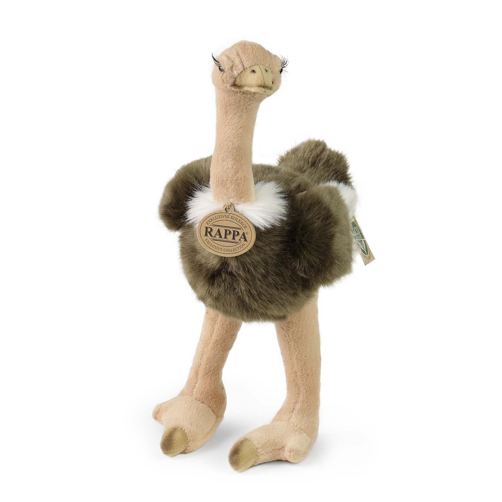 Plyšový pštros měří 32 cm a díky těm nejkvalitnějším materiálům se řadí do Exkluzivní kolekce plyšových hraček značky Rappa. Díky ručnímu zpracování každého kusu navíc vypadá jako živý. Proč označení ECO-FRIENDLY? Rappa si je vědoma všech dopadů na životního prostředí, zaměřuje se na udržitelnost a omezení používání plastů na minimum. Proto je výplň hraček vyrobena z recyklovaných materiálů, zejména PET lahví. Ta je však zcela nezávadná a vhodná i pro děti od narození. FUN FACT: Věděli jste, že pštrosi spí jen krátce a často vsedě, takže jsou pořád bdělí a připravení utéct?