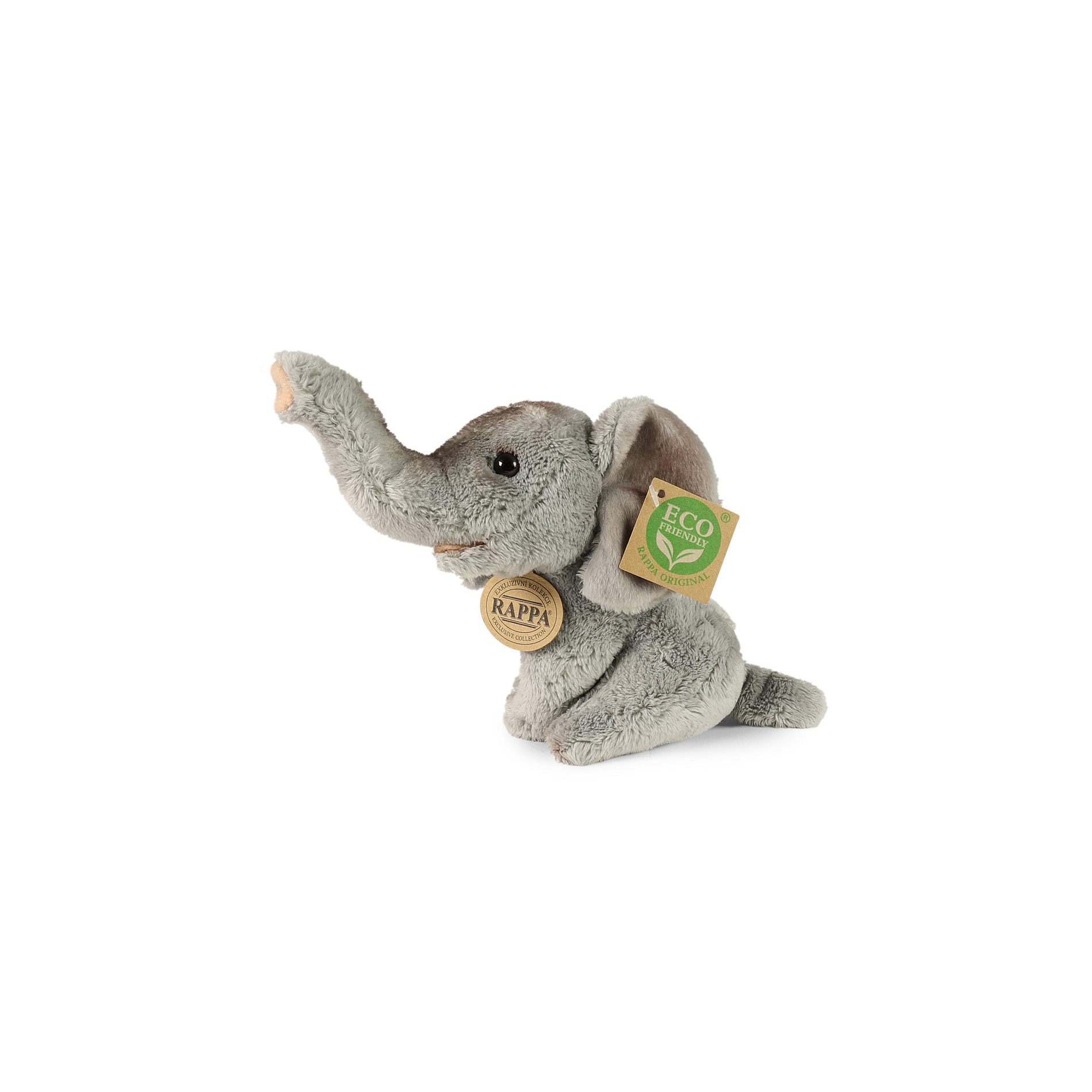 Plyšový slon měří 15 cm a díky těm nejkvalitnějším materiálům se řadí do Exkluzivní kolekce plyšových hraček značky Rappa. Díky ručnímu zpracování každého kusu navíc vypadá jako živý. Proč označení ECO-FRIENDLY? Rappa si je vědoma všech dopadů na životního prostředí, zaměřuje se na udržitelnost a omezení používání plastů na minimum. Proto je výplň hraček vyrobena z recyklovaných materiálů, zejména PET lahví. Ta je však zcela nezávadná a vhodná i pro děti od narození. FUN FACT: Věděli jste, že sloni mají neuvěřitelnou paměť a dokážou si pamatovat vodní zdroje a cesty k nim i po mnoha letech?