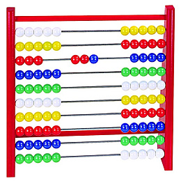 Klasické barevné počítadlo s umělohmotnými kuličkami na dřevěném stojanu. Počítadlo podporuje logické myšlení a pomáhá při prvních početních úkolech. Výrobek splňuje požadavky EU na bezpečnost hraček a je vhodný pro děti od 3 let.