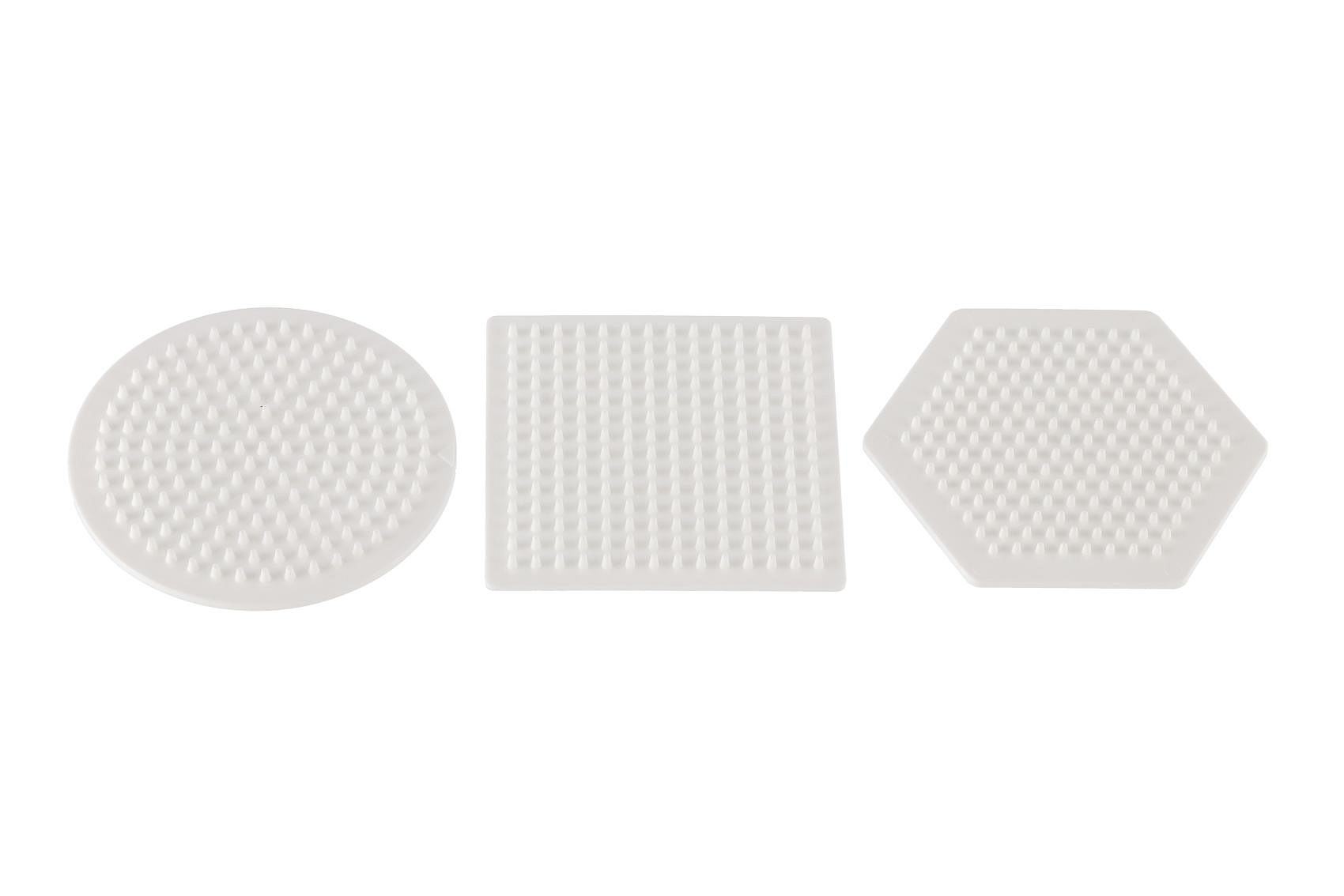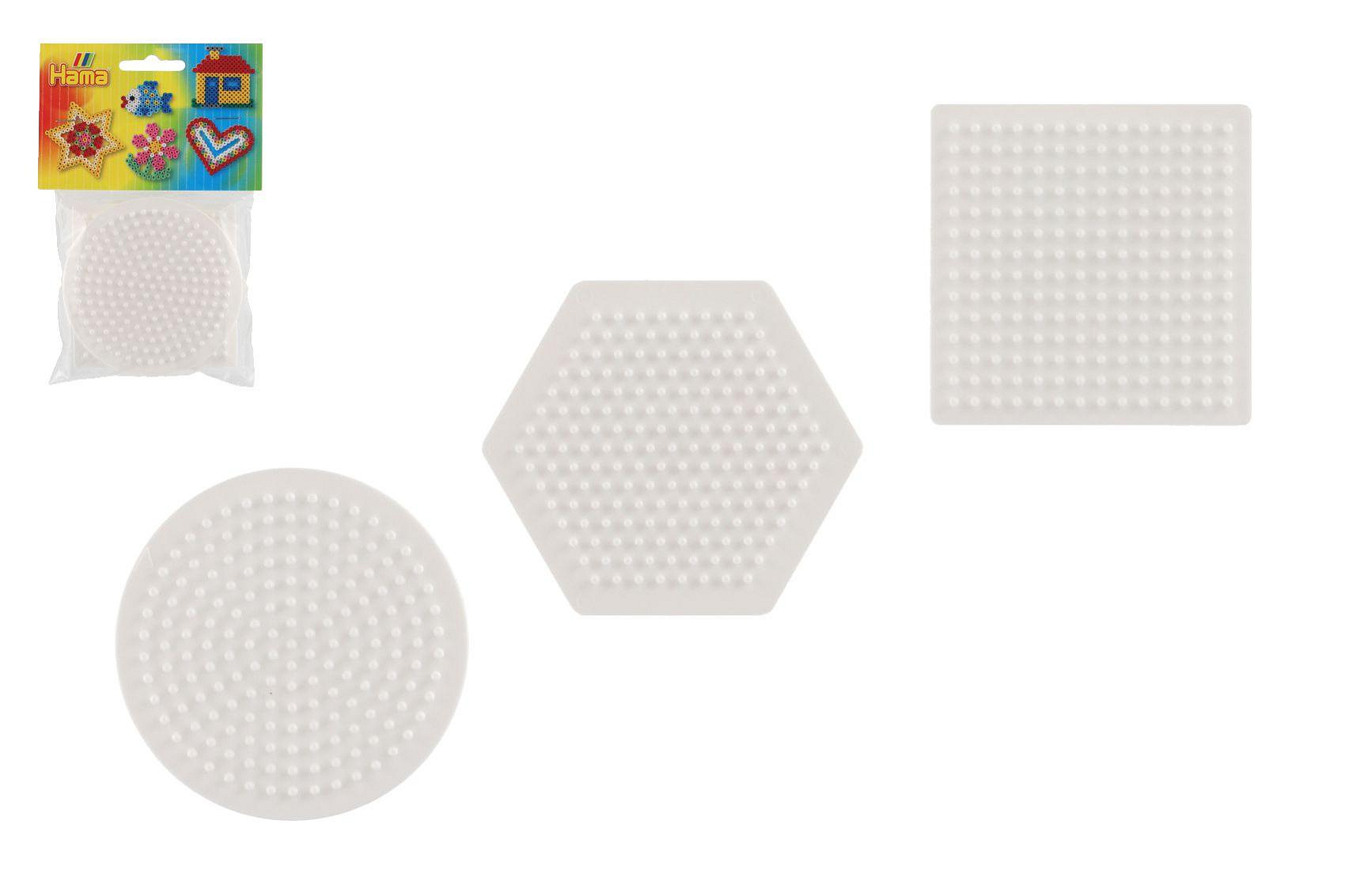 Podložka na zažehlovací korálky Hama MIDI- kolečko,čtverec,šestiúhelník plast 3ks v sáčku 9x9cm