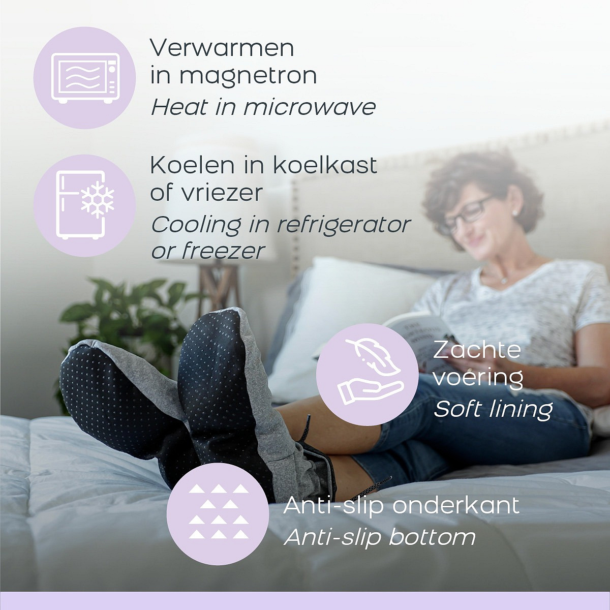 The secret is that you can put the slippers in the microwave to warm up and in the fridge and freezer if you want a cooling effect. The natural filling of linseed and clay beads the temperature for an extra long time. Experience the wonderfully relaxed warmth or cooling through your feet throughout the body. In addition, it also contains lavender. The lavender gives a wonderful scent that ensures that you can relax optimally.